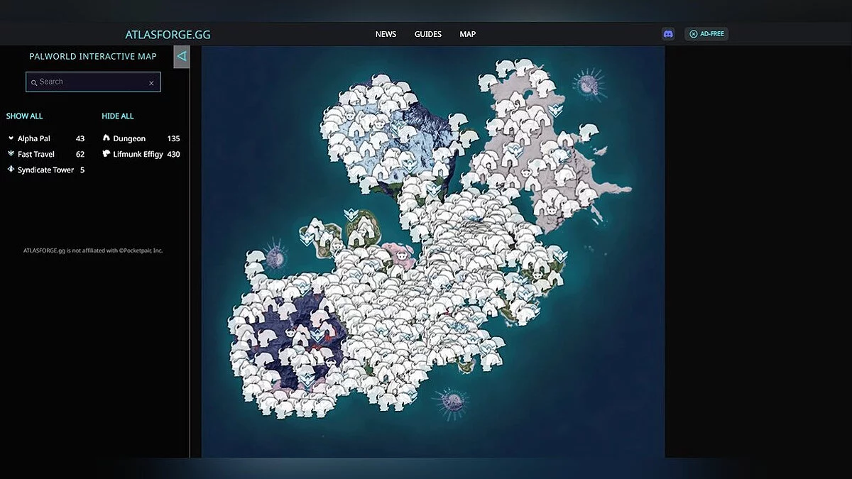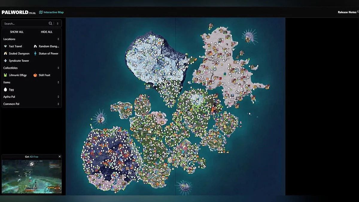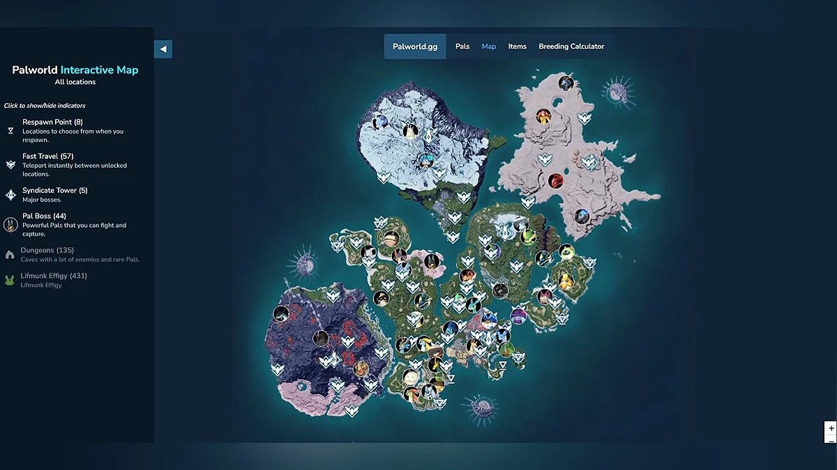 Открытый мир Palworld представляет большие регионы, разделённые различными биомами — от экстремально холодных ледяных равнин до раскаленных пустынь. Для удобства освоения карты и поиска конкретных активностей можно использовать недавно созданные интерактивные карты. Все имеющиеся карты оснащены подробным изображением открытого мира Palworld, фильтрами для удобного поиска объектов на карте, но отличаются наполнением и количеством предложенной информации.