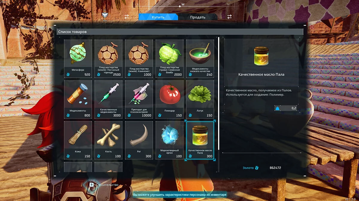 Также качественное масло Пала можно приобрести без охоты на зверей. Бродячий торговец в красном костюме продает множество расходников на главной площади пустынного города. Стоимость одного масла — 300 золотых монет.