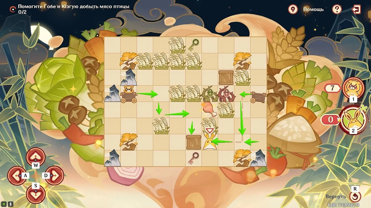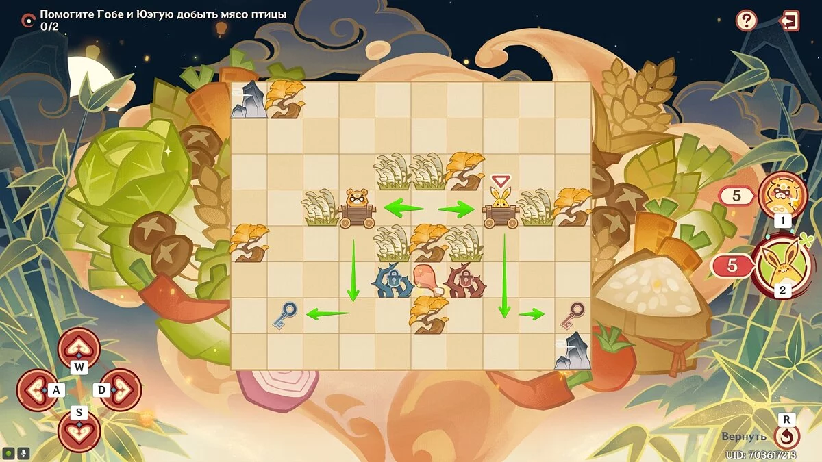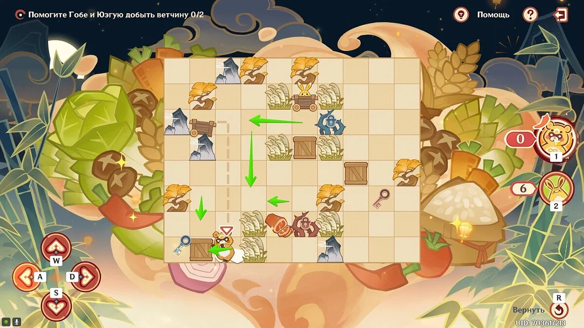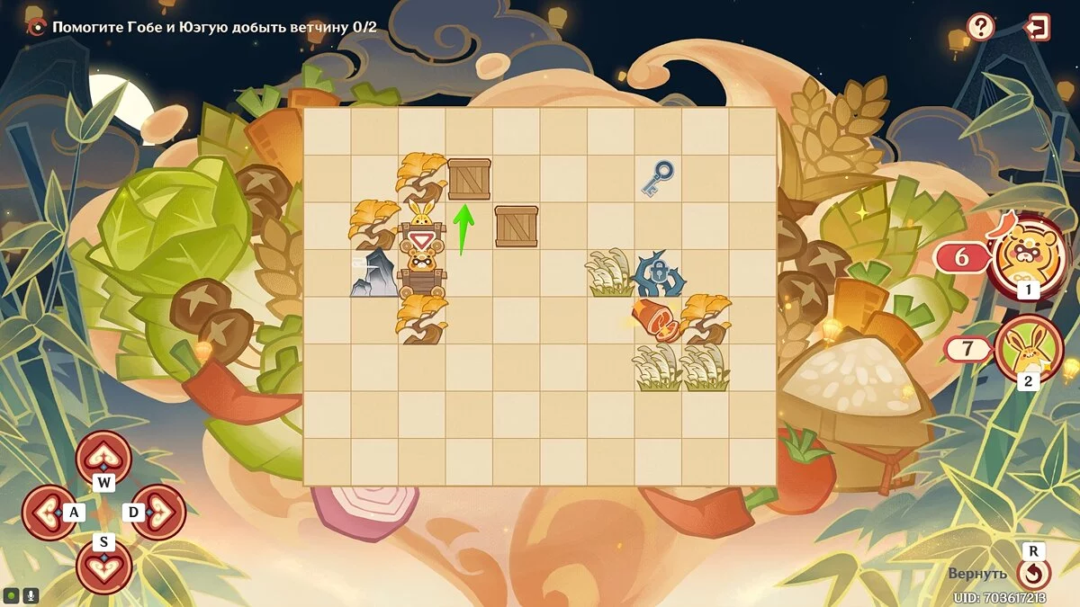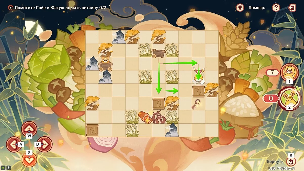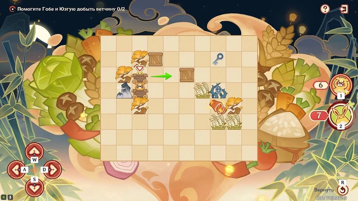 В следующем испытании для доступа к ингредиенту понадобится разблокировать проход при помощи ключа. Помните, что вы можете возвращаться обратно по той же траектории, по которой пришли. Это позволит восстановить количество потраченных ходов.