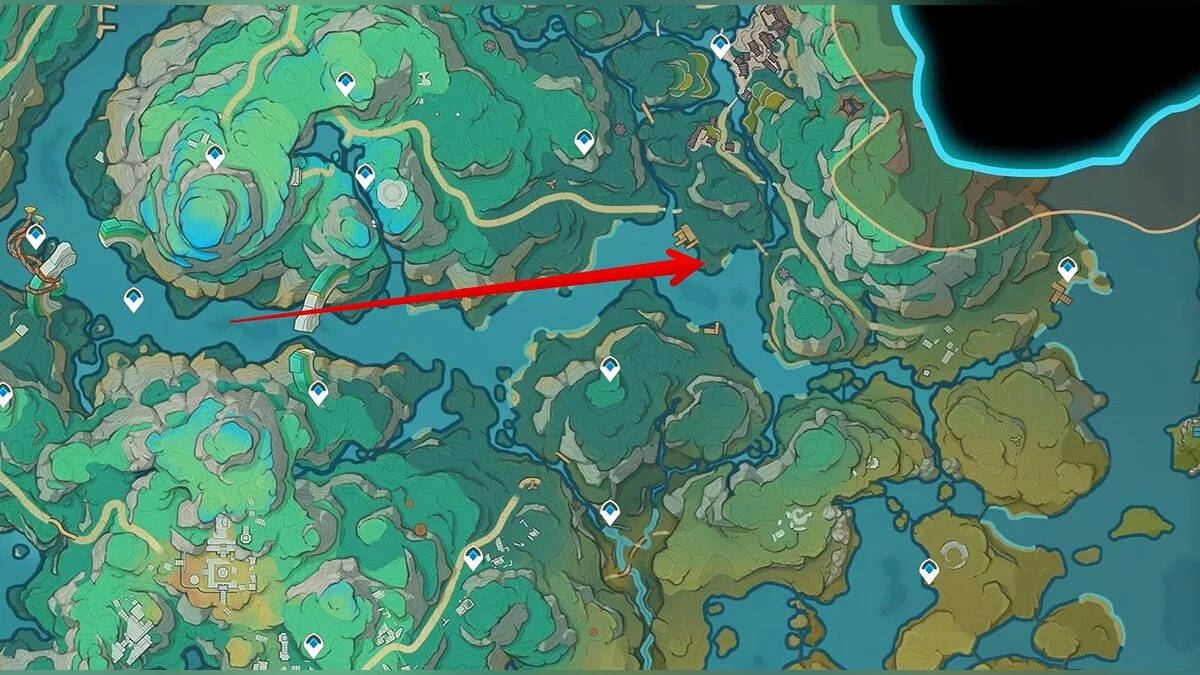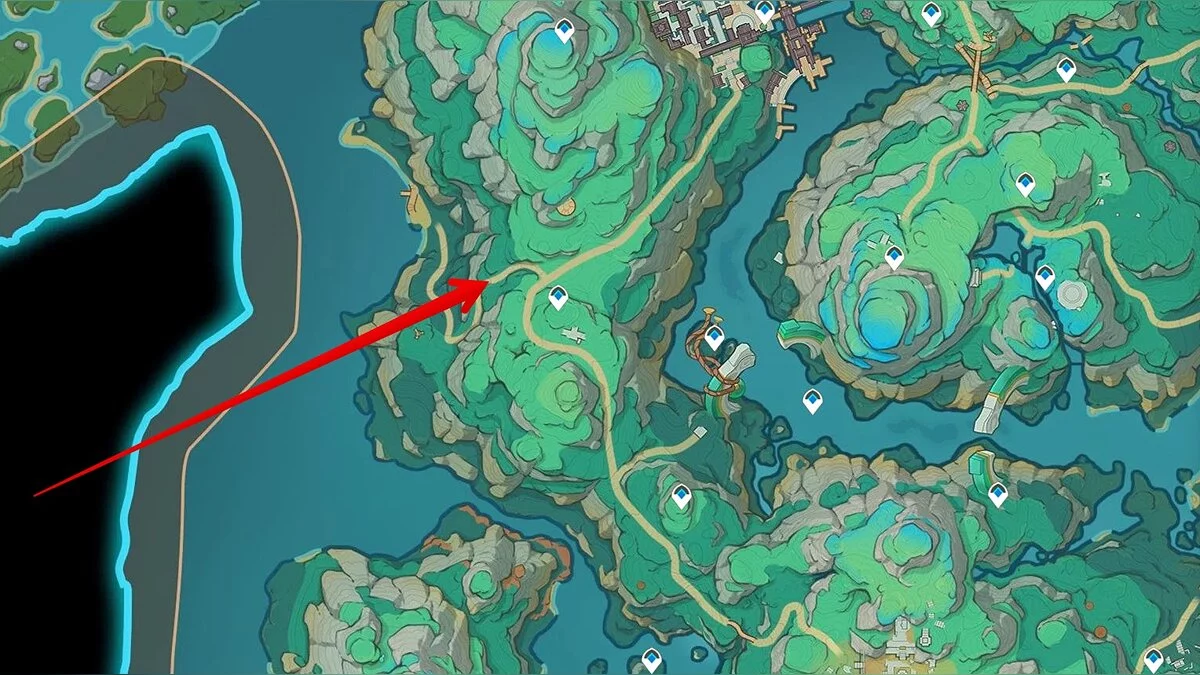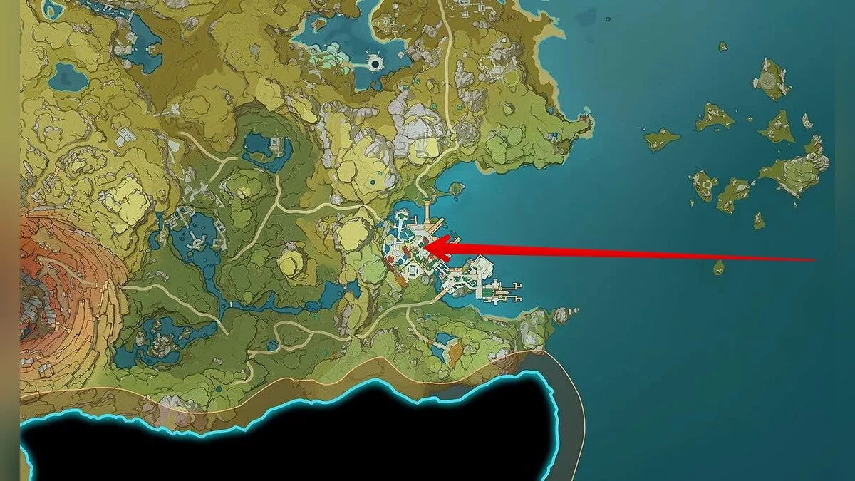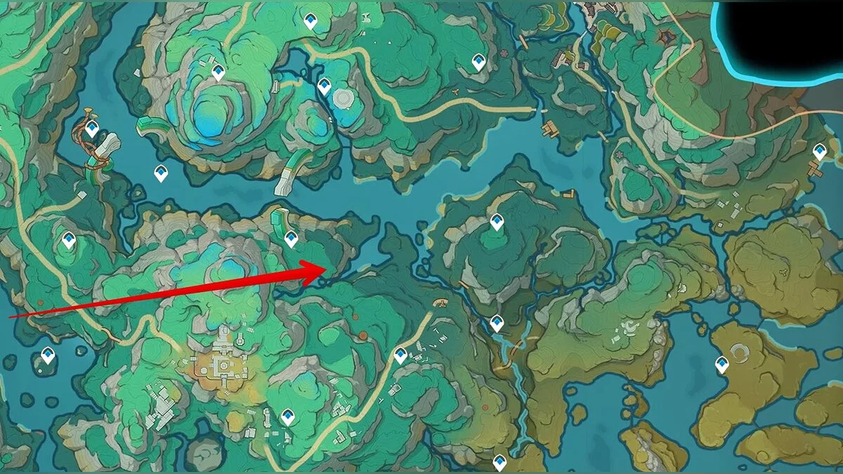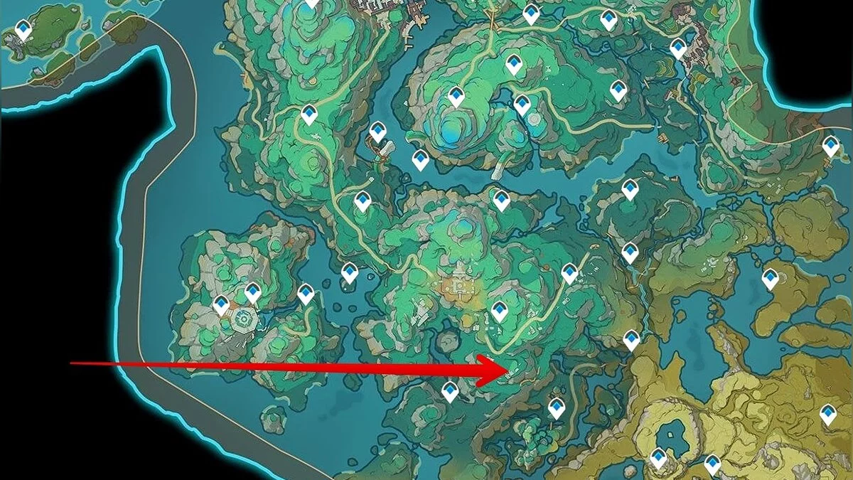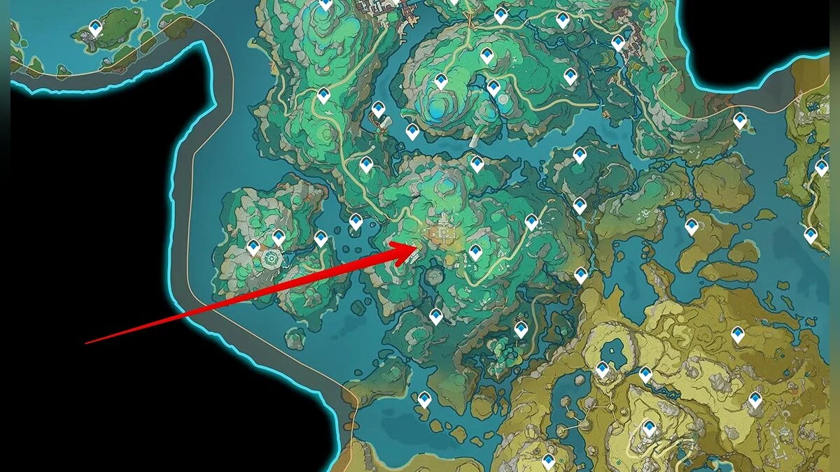 От телепорта двигайтесь на юг, а на развилке поворачивайте на запад и спускайтесь вниз.
