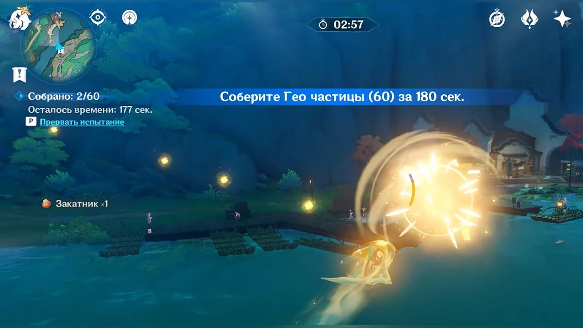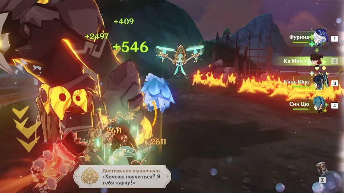 Вас ждут сразу два мини-босса. При подборе команды обратите внимание, что они владеют Гео-стихией. Впрочем, одолеть этих монстров не составит труда. За победу над ними вы получите достижение «Владыки гор Чичжан».