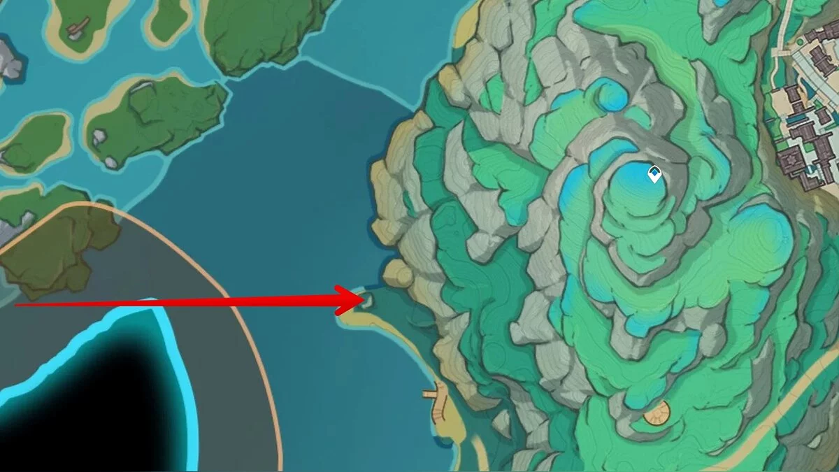 Затем поднимитесь на вершину справа от вас и бросьте в море кусок сырого мяса.