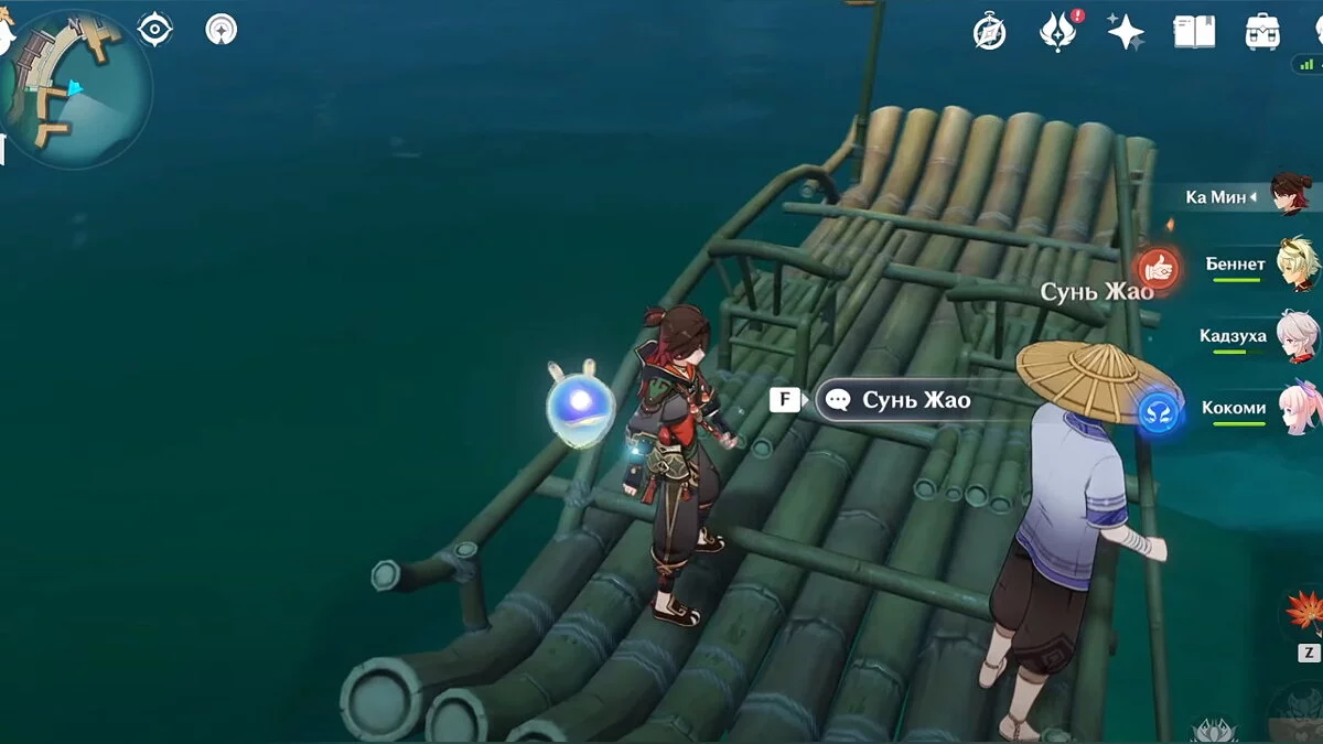 Поговорите с неизвестной девушкой на лодке и выполните её поручение. В качестве награды вам дадут 30 Камней истока и ачивку «Сян Сян Цзюнь».