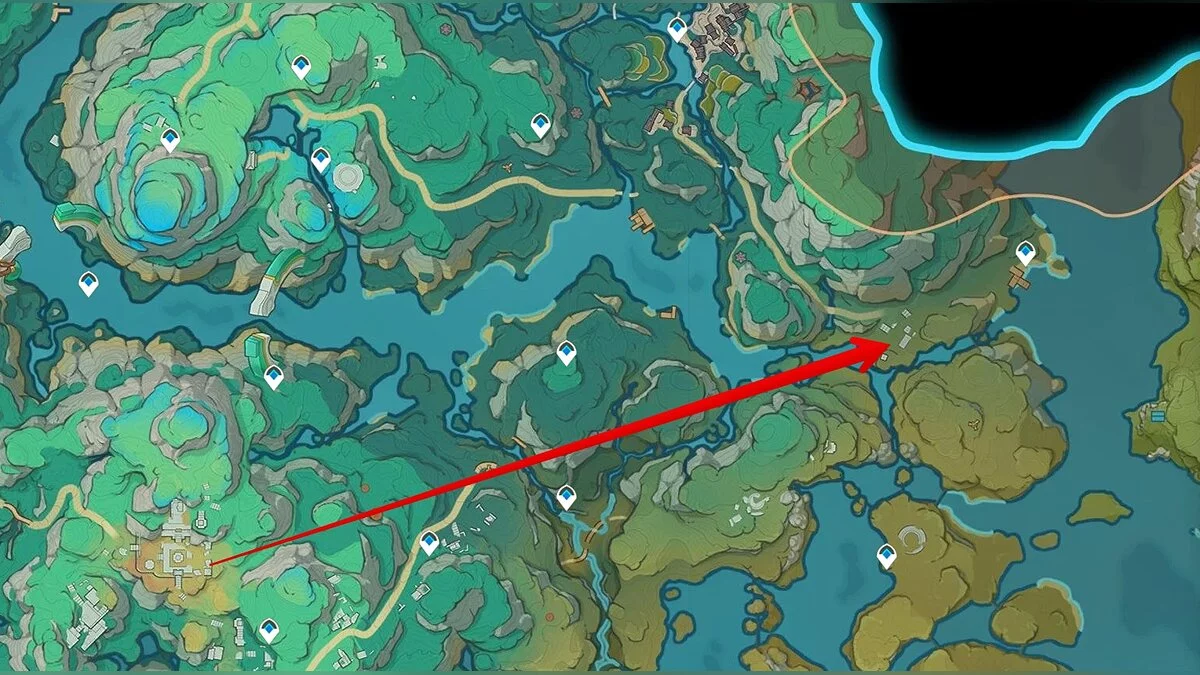 Затем двигайтесь на восток. Можете воспользоваться телепортом.