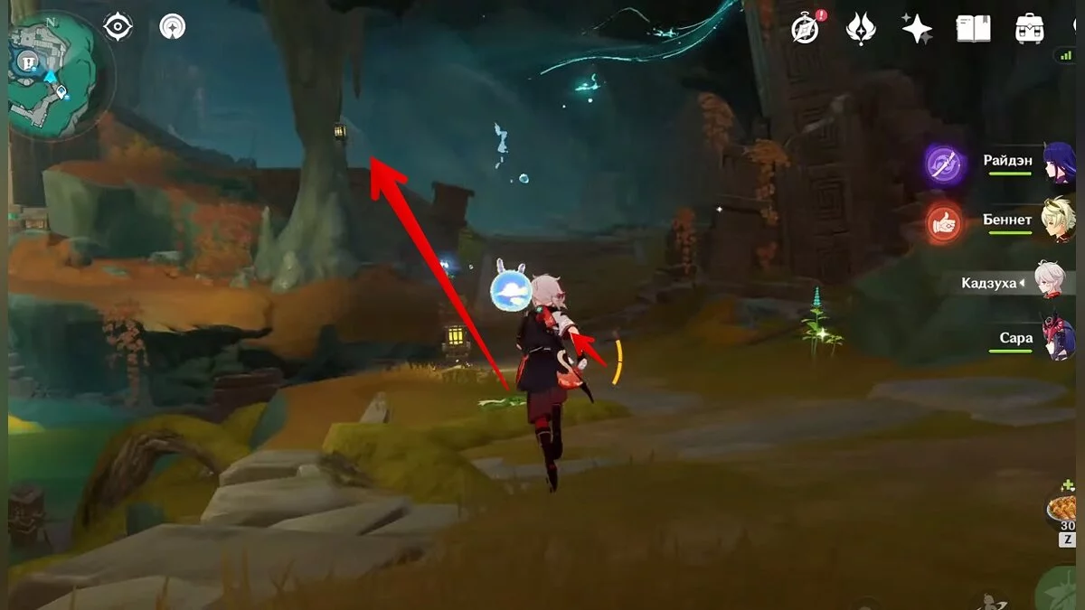 Первым делом одолейте хиличурлов. После этого вы должны увидеть двух призрачных сов.