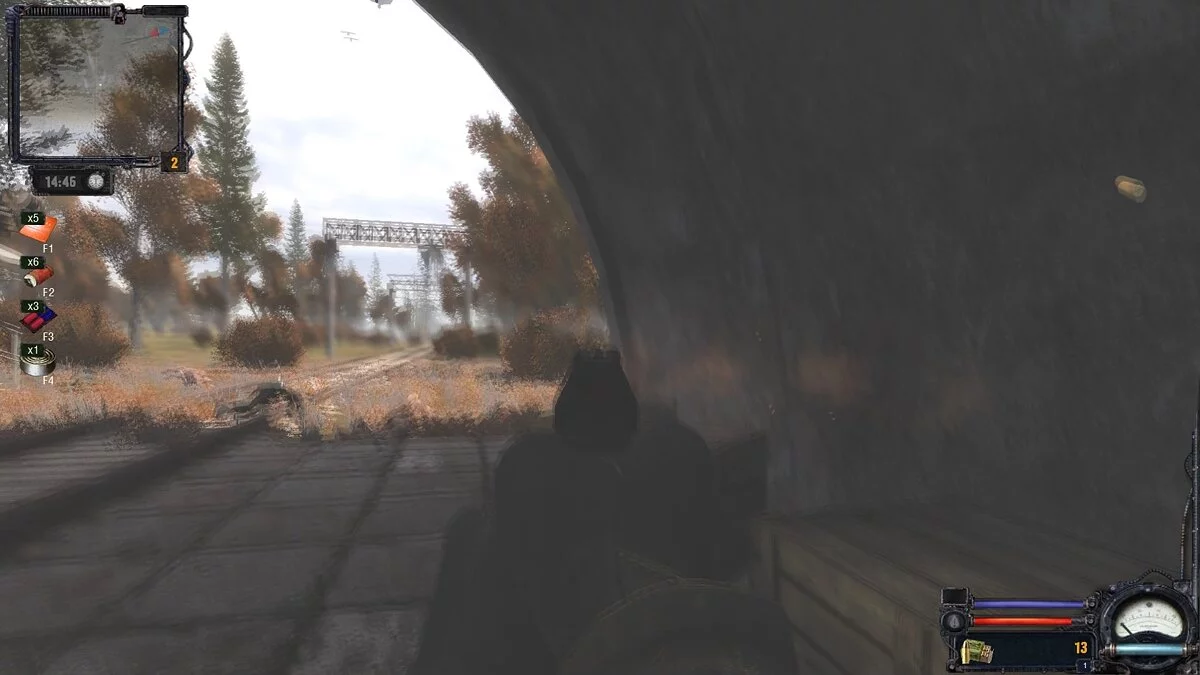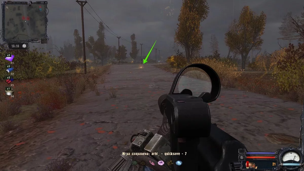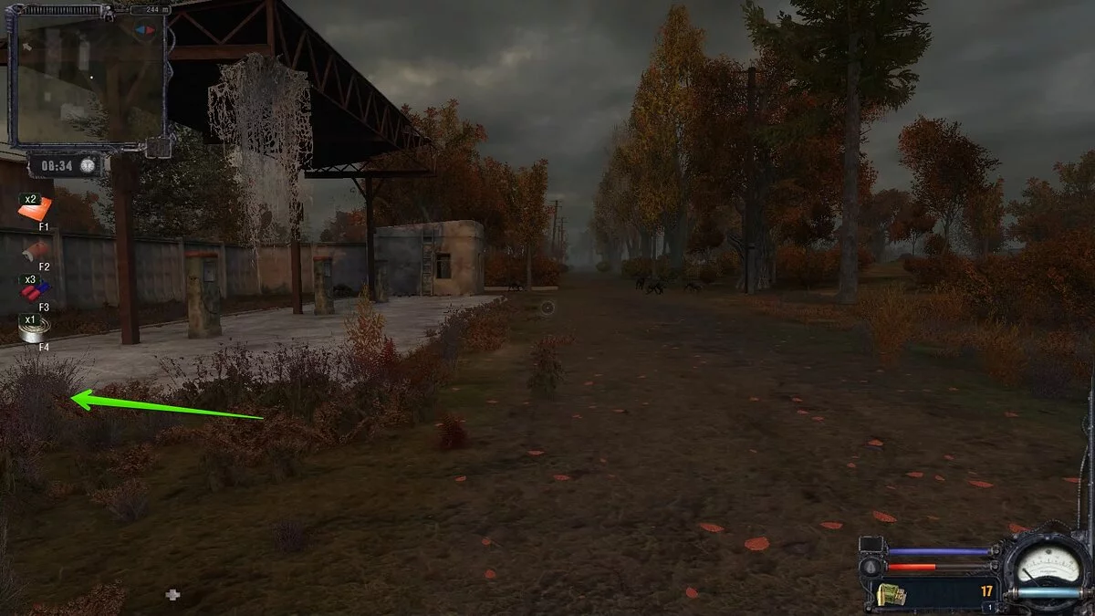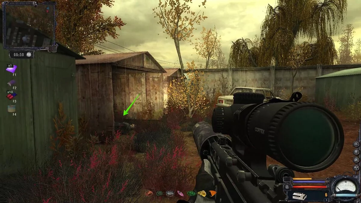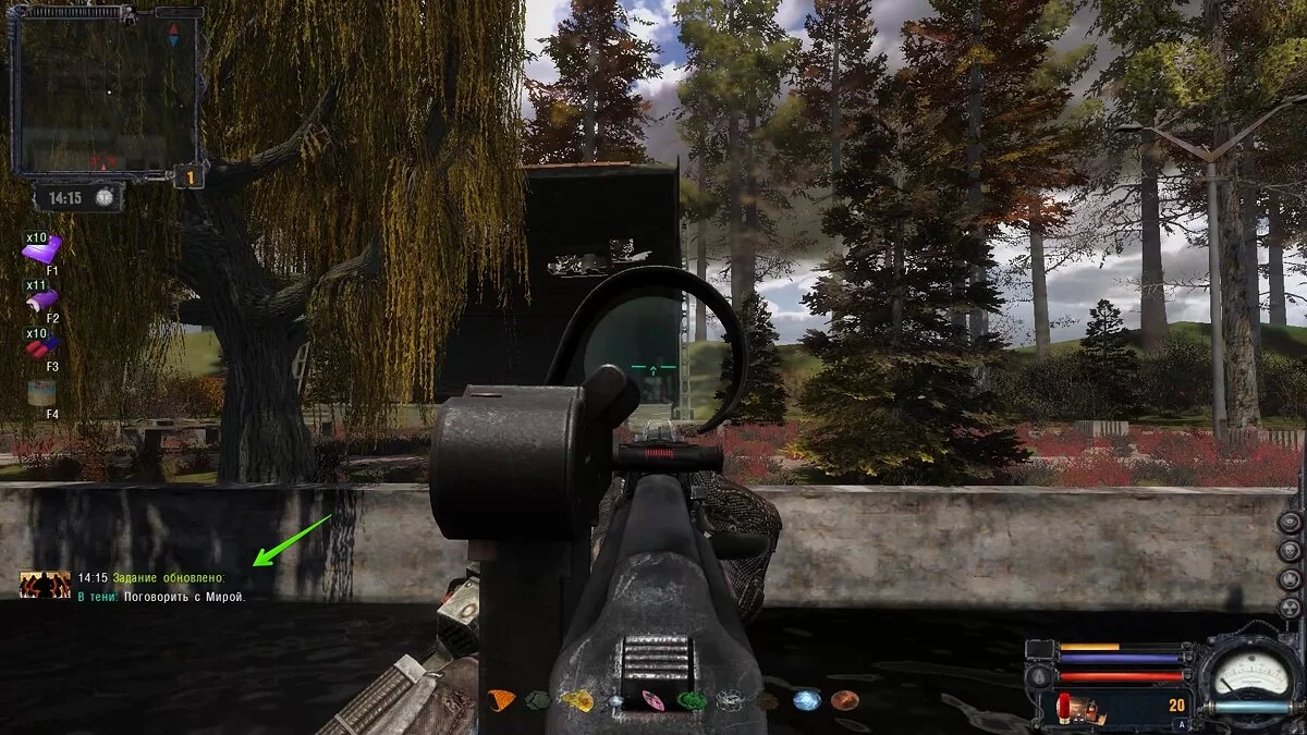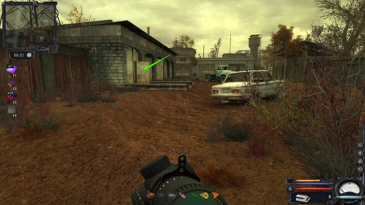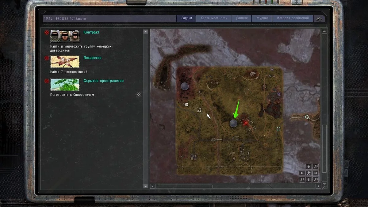 Первым делом нужно забрать детектор — это обязательное условие. Он лежит в кузове грузовика, отмеченного на вашей карте. Здесь достаточно сильный радиационный фон, так что предварительно приобретите таблетки или водку.
