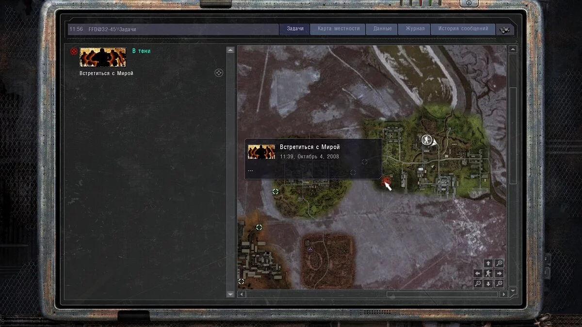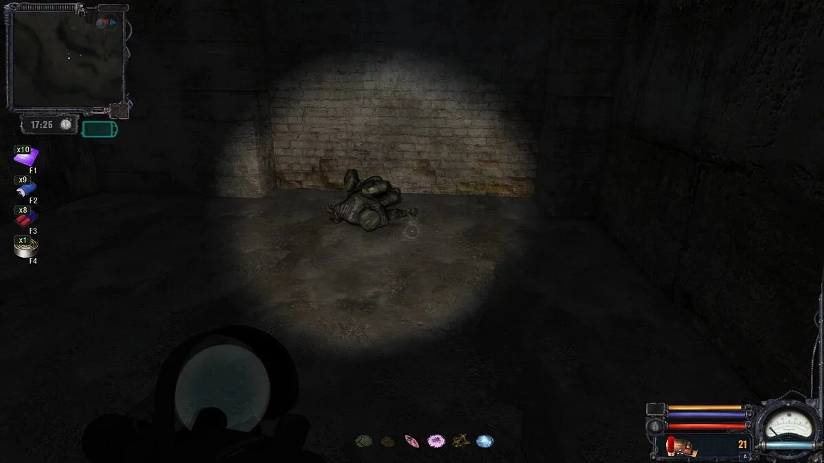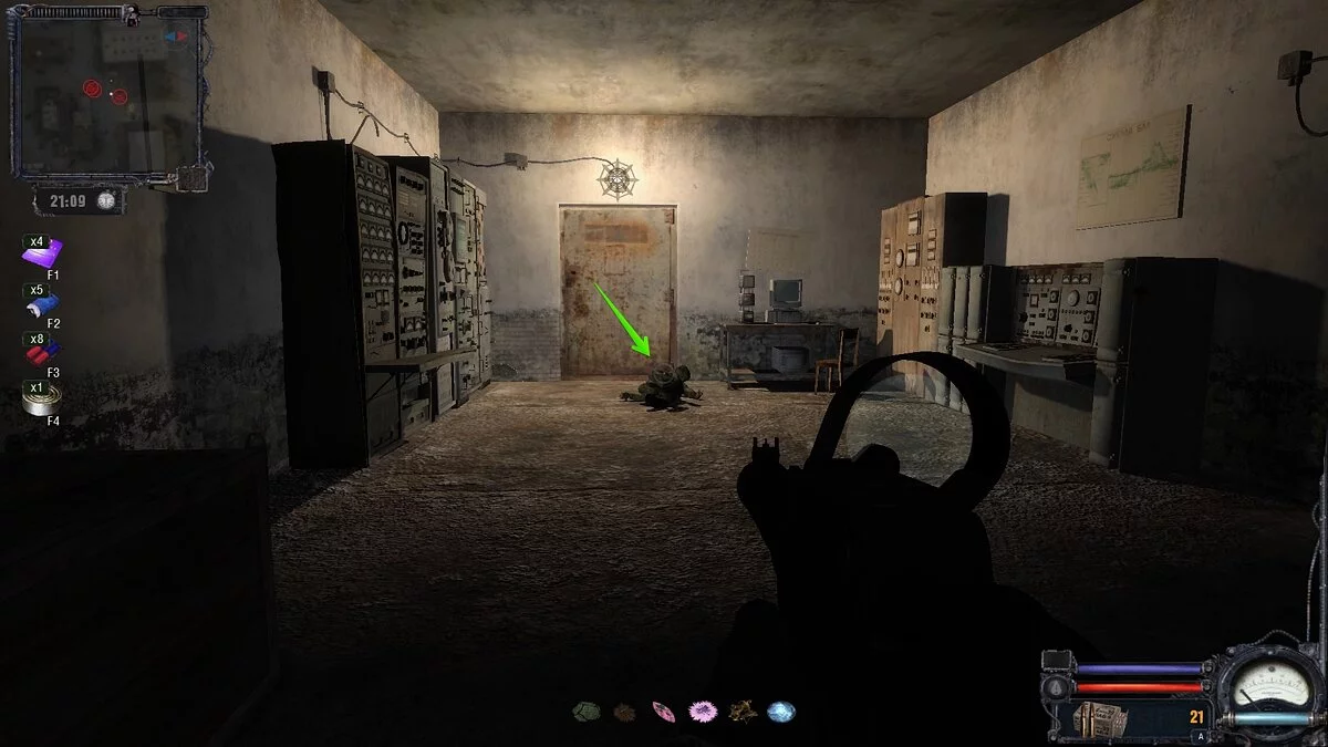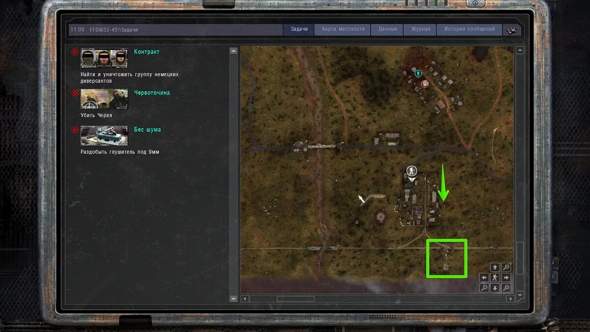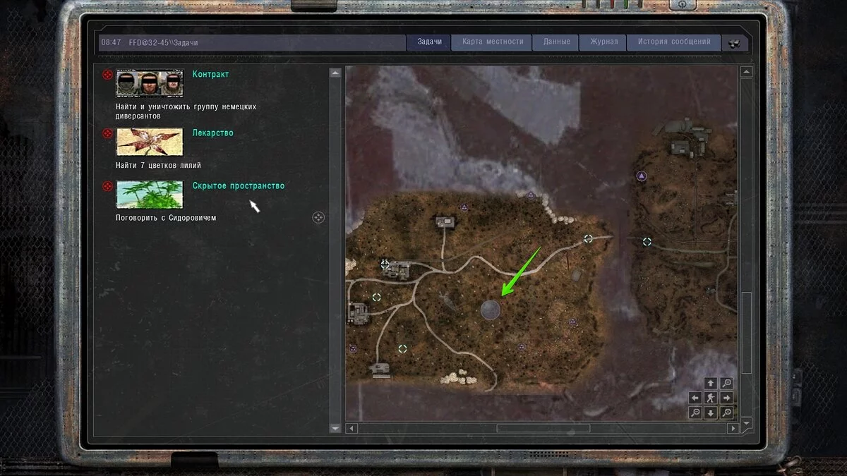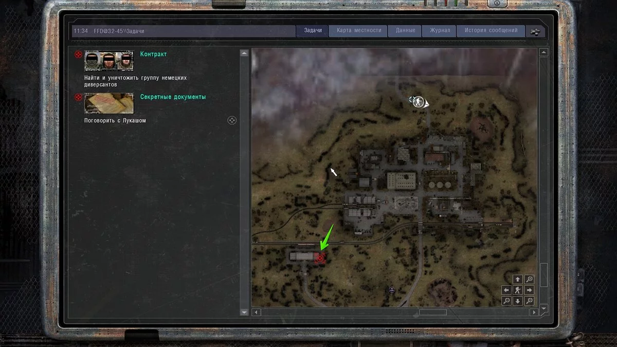 С этого момента на карте будет отображаться вход в катакомбы, что на территории завода. Осмотрите отмеченную область и спуститесь на нижний уровень. В небольшой комнате лежит труп — заберите у него ПДА и запомните код «876254». Но не спешите искать выход.
