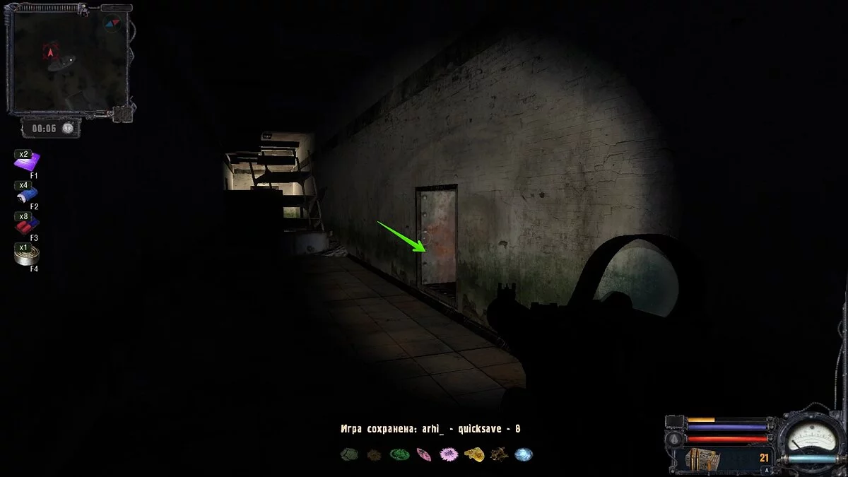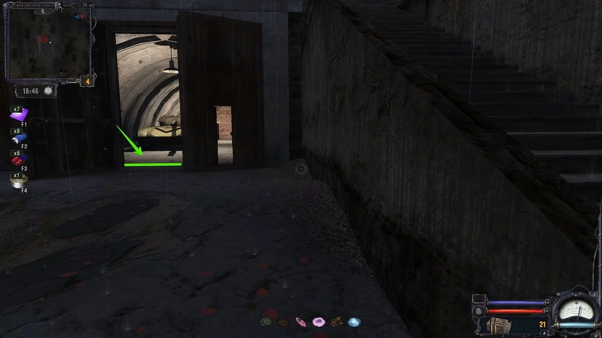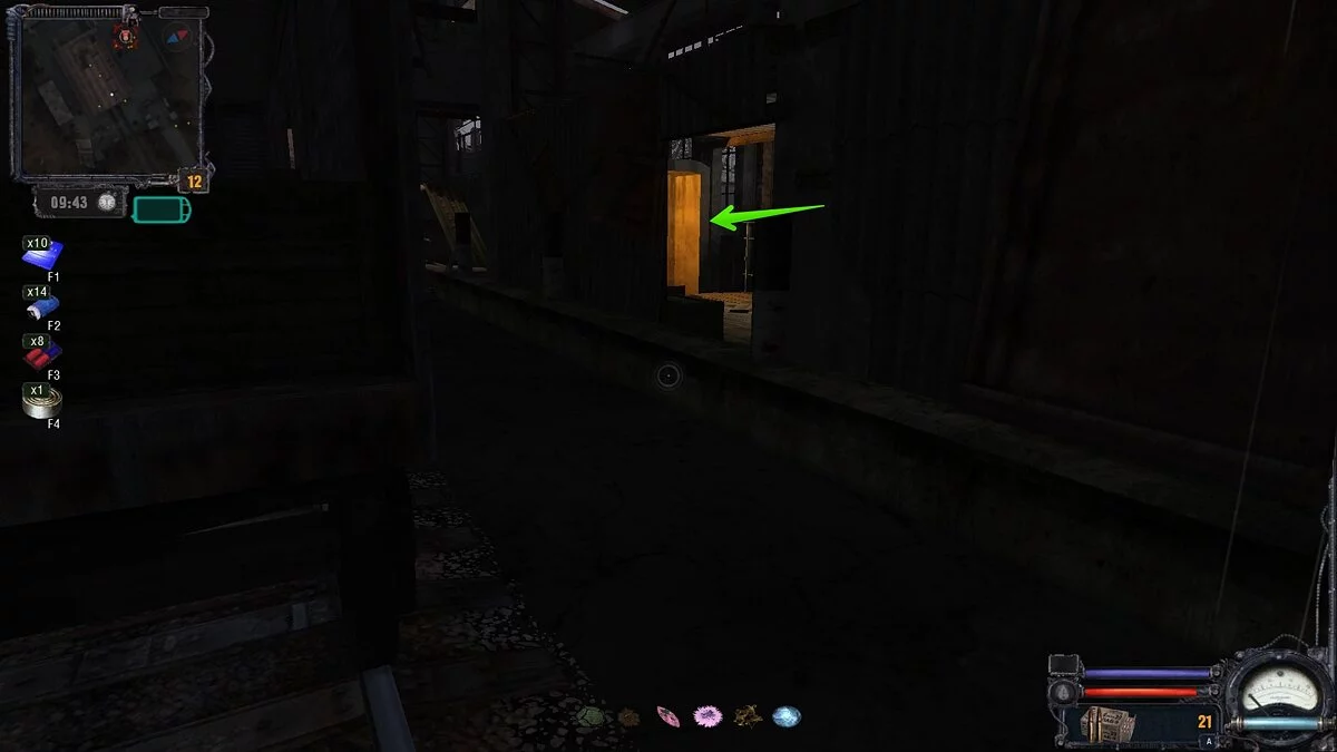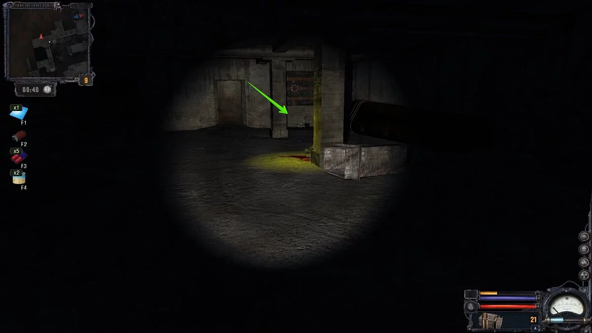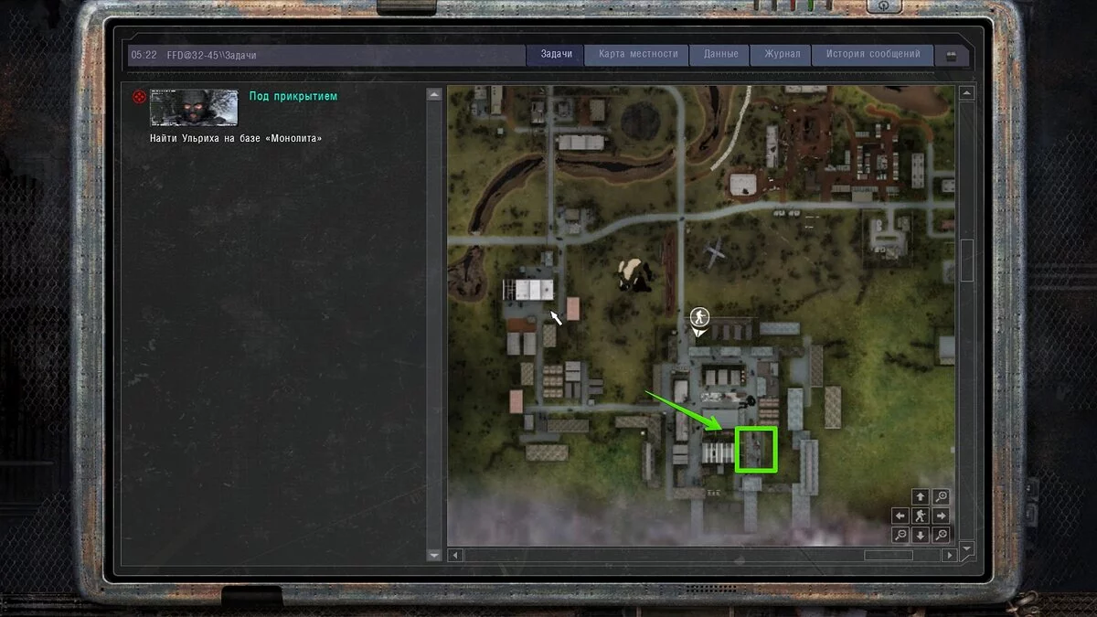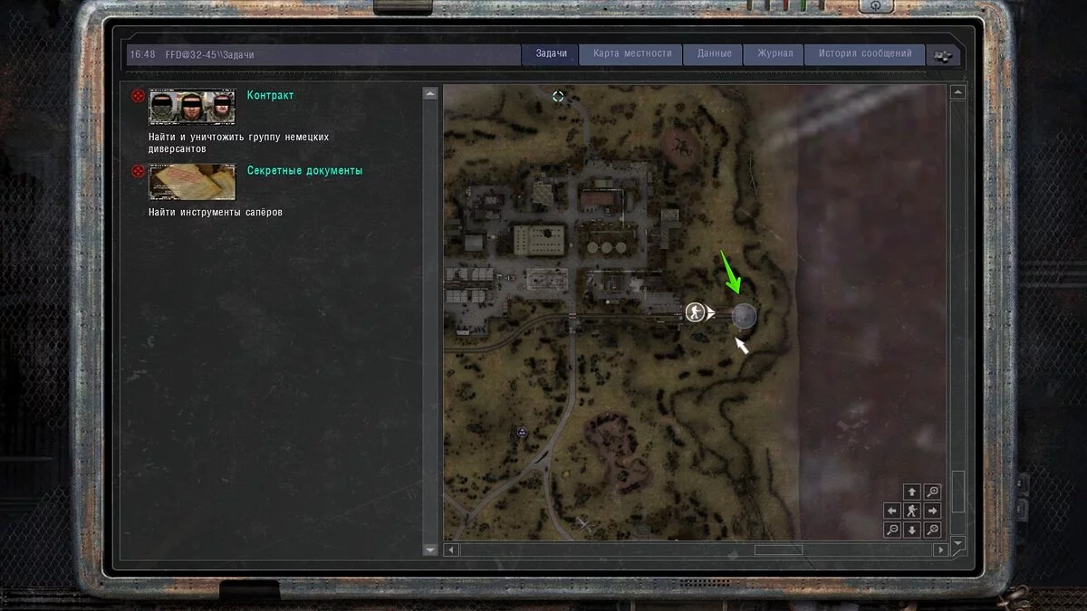 С этого момента на карте будет отображаться вход в катакомбы, что на территории завода. Осмотрите отмеченную область и спуститесь на нижний уровень. В небольшой комнате лежит труп — заберите у него ПДА и запомните код «876254». Но не спешите искать выход.