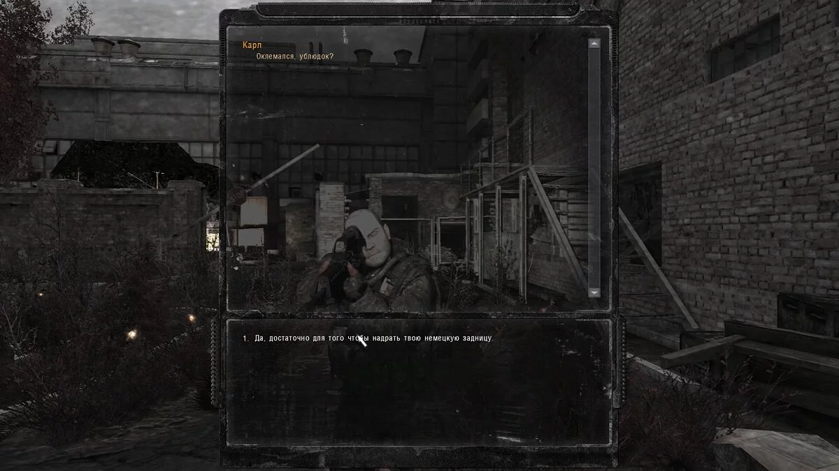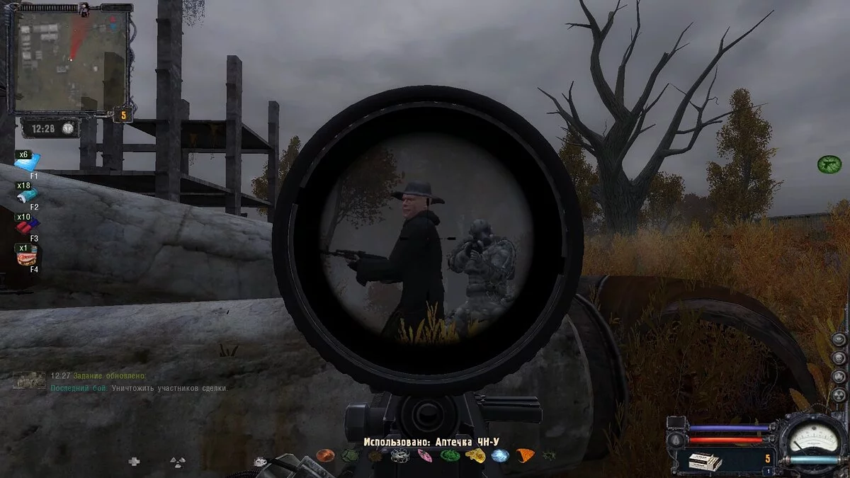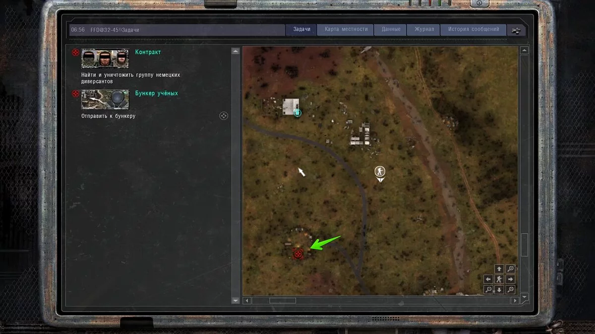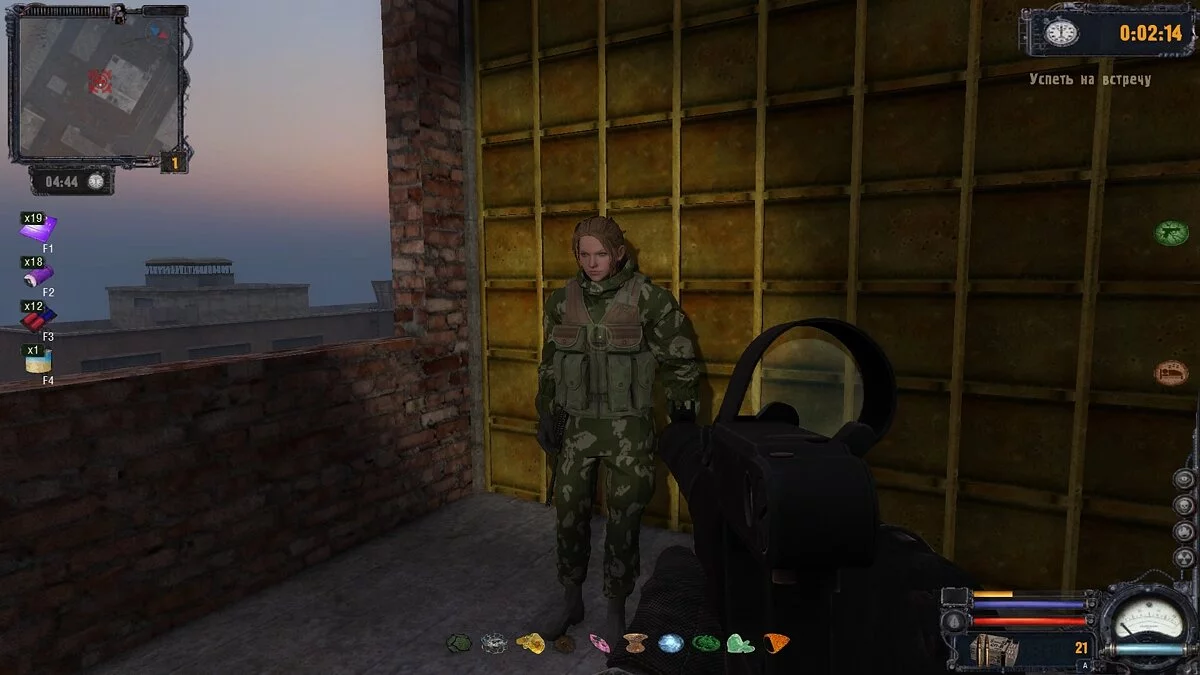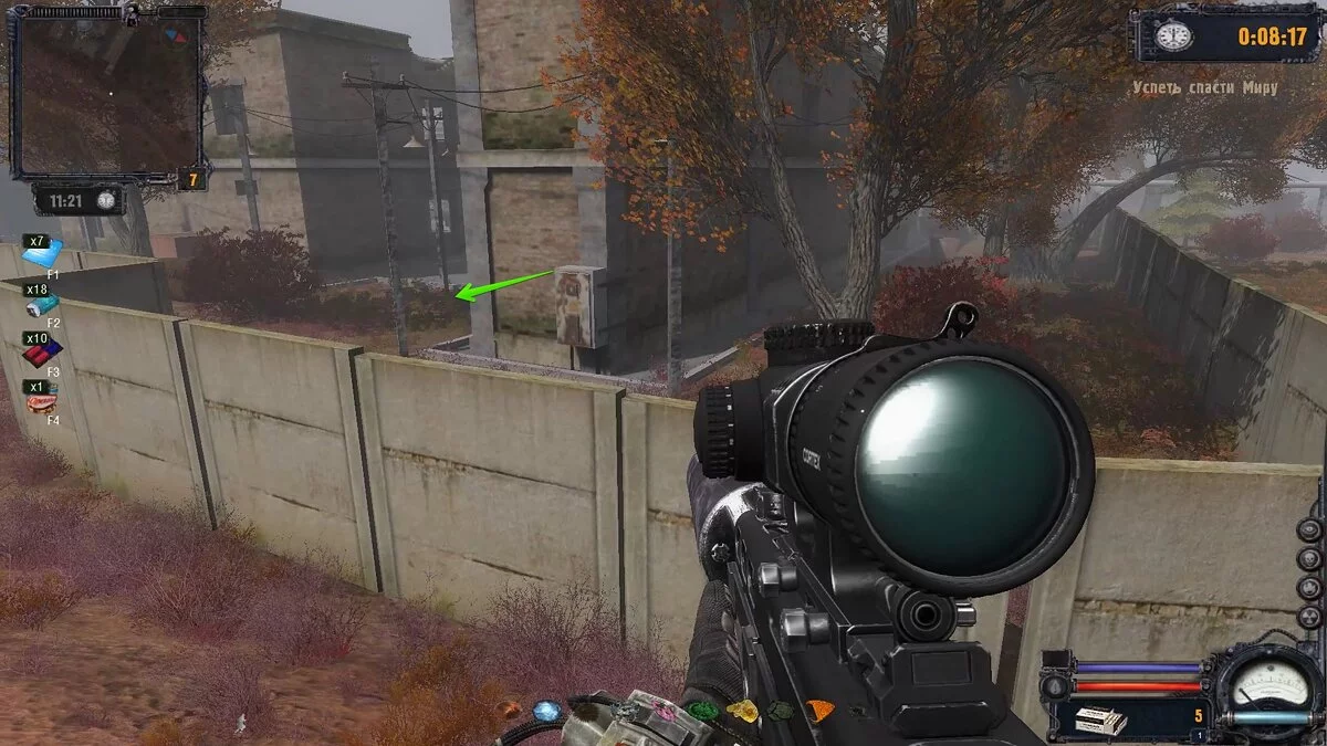 По завершении беседы задание обновится — кто-то застрелит немца, а в верхнем правом углу экрана появится таймер. За отведённое время вам нужно добраться до стройки и познакомиться со снайпером. Предварительно советуем вернуть все свои вещи и снаряжение, так как по пути вы встретите большое количество сильных мутантов.