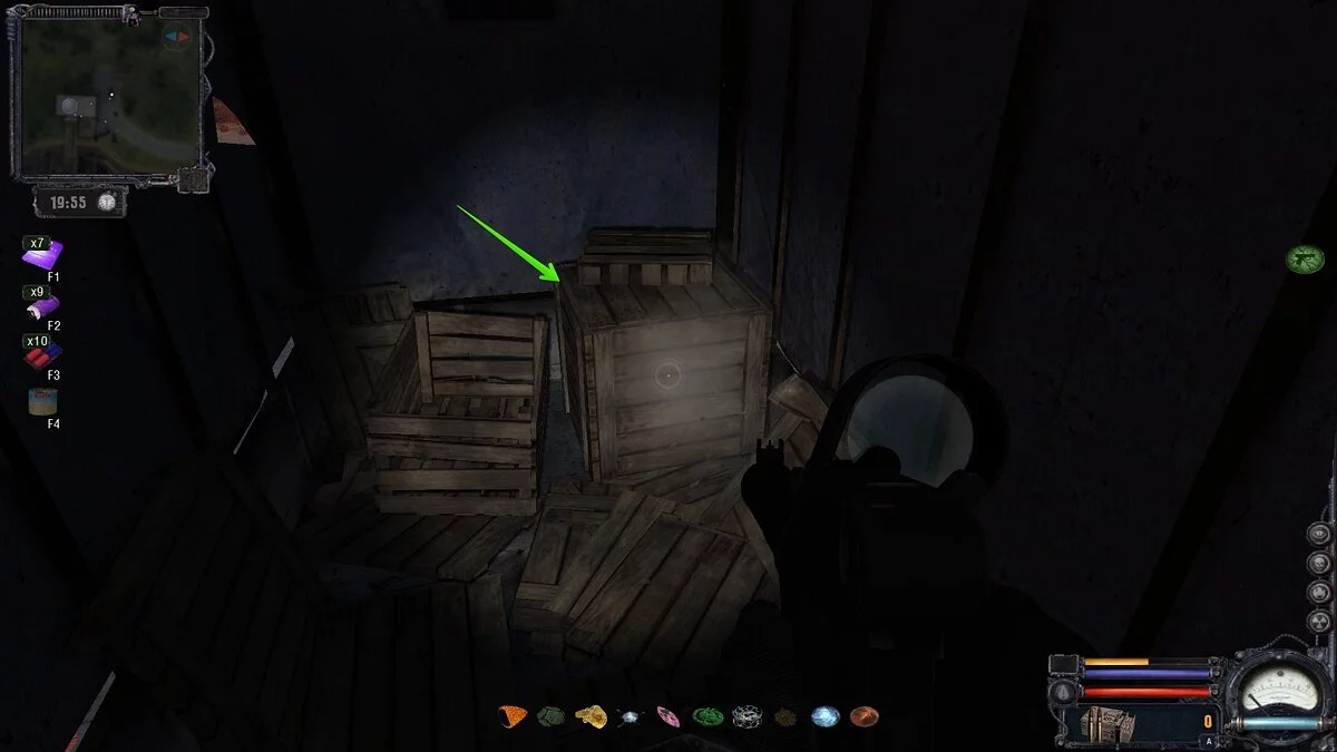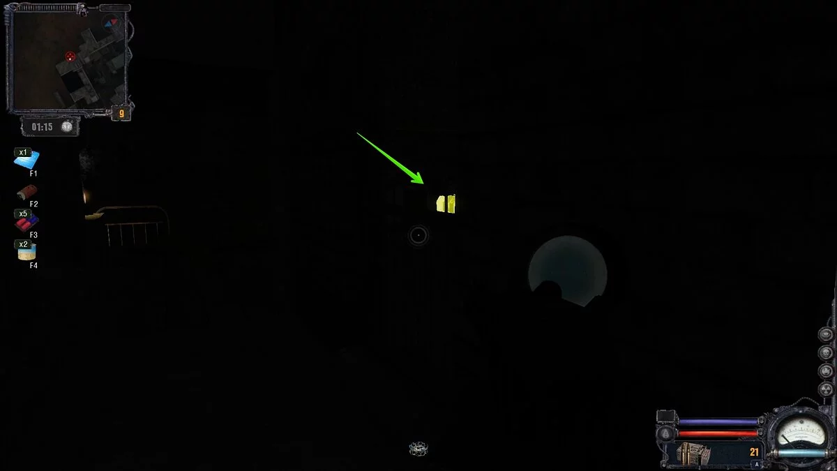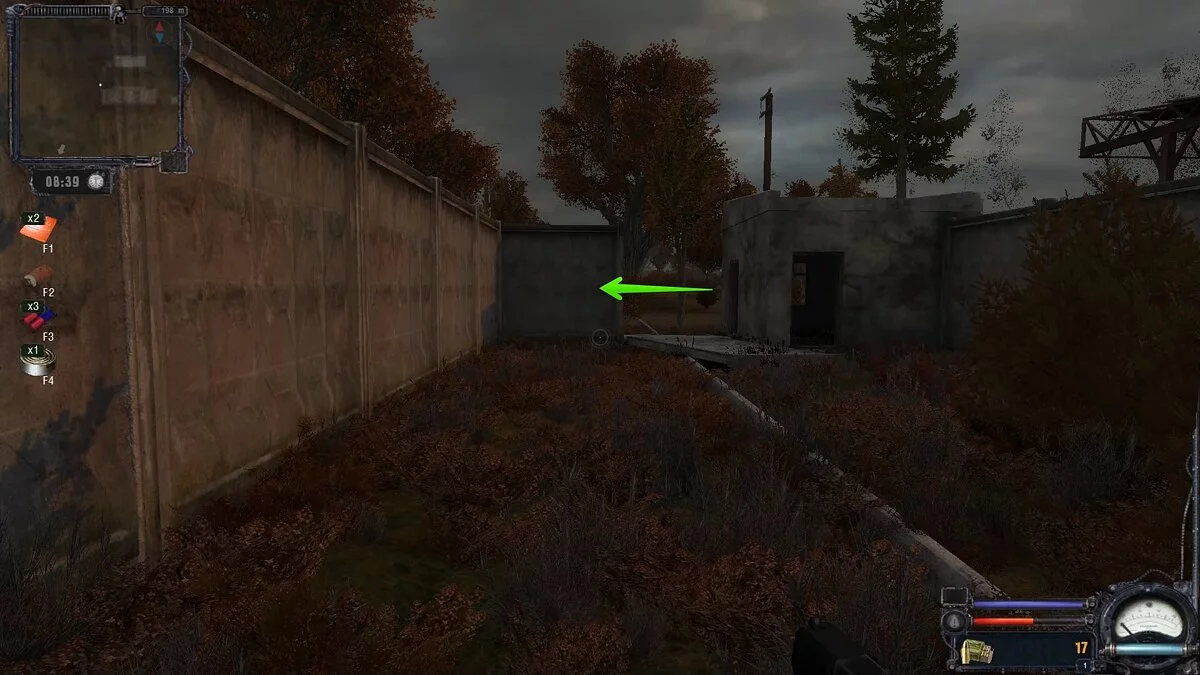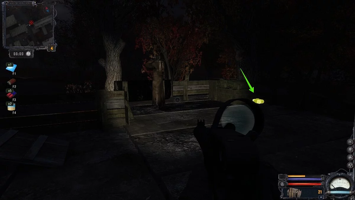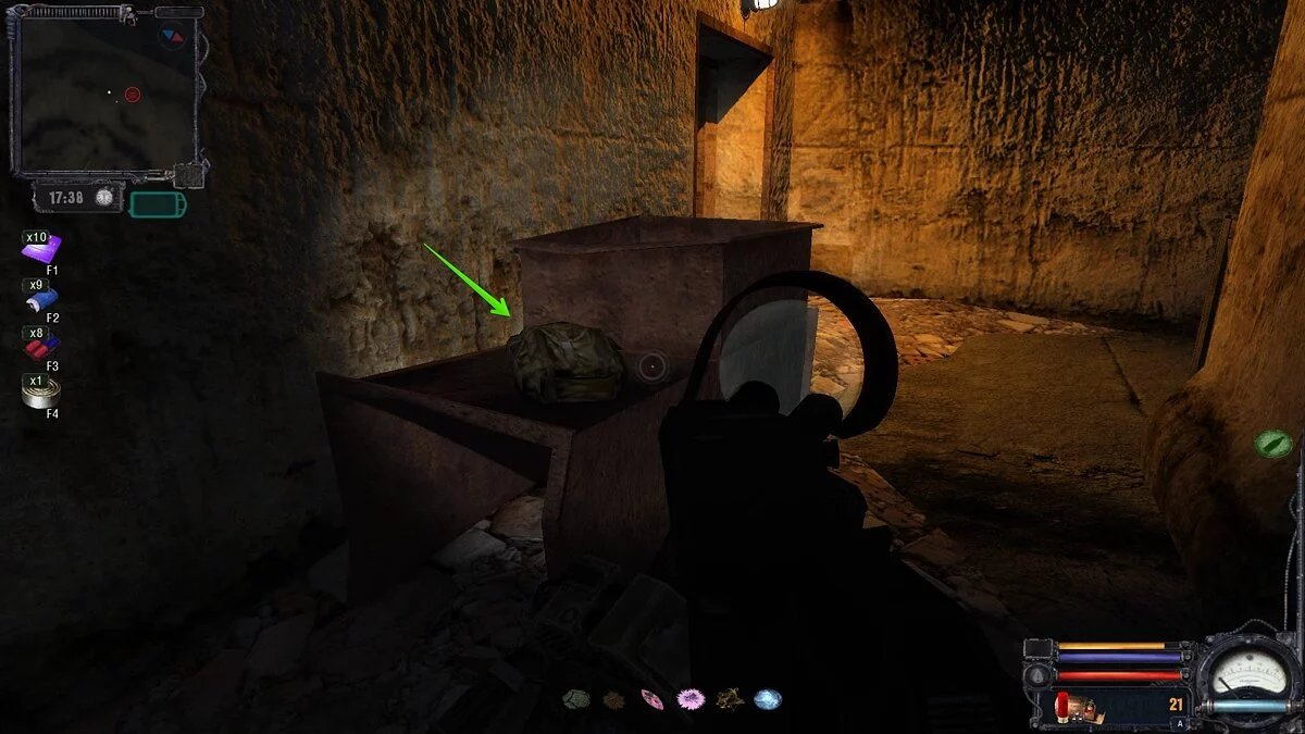 Последний заложить сложнее. Доберитесь до входа в бункер, где сидит главарь, но выключите фонарь. Справа от входа есть здание и спуск в подвал. Спуститесь на два уровня — здесь вы найдёте уникальный артефакт.