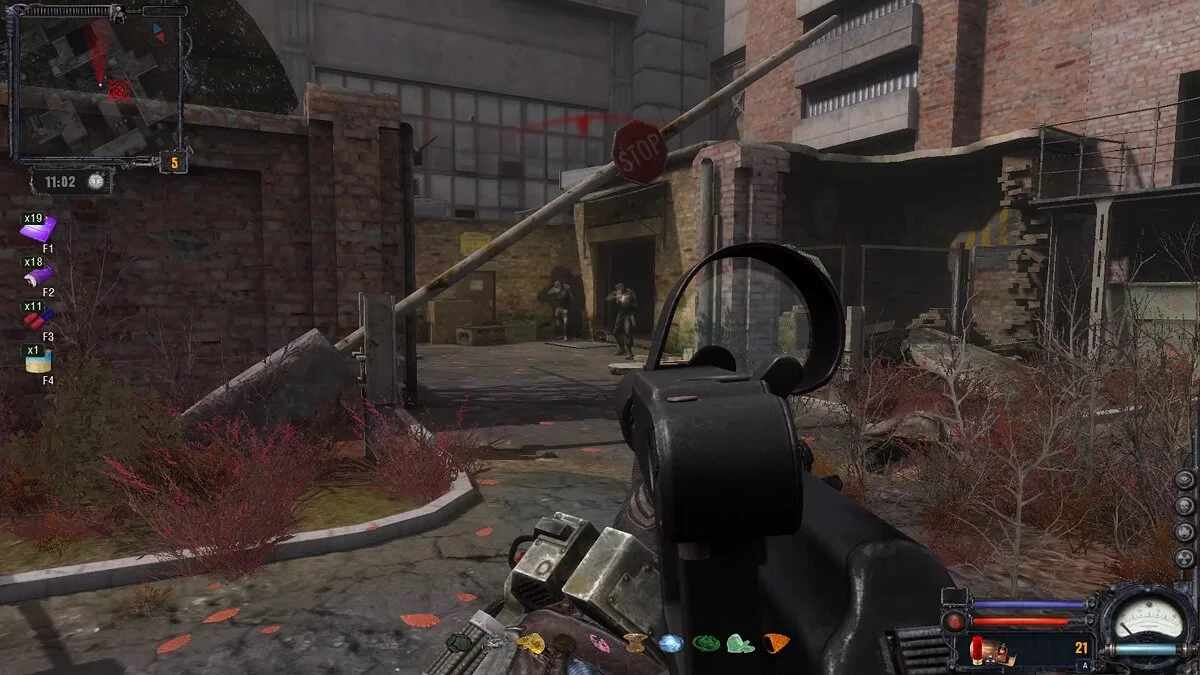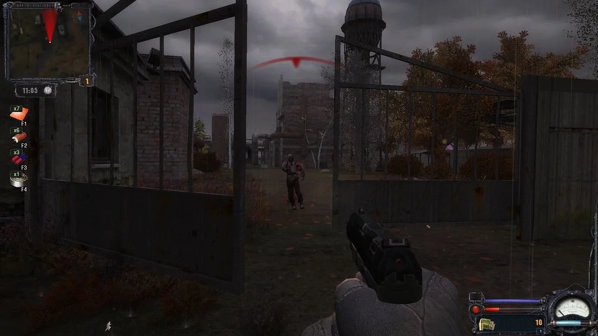 Выполним условие, бегите к переходу на завод. На КПП героя будет ждать группа бандитов.