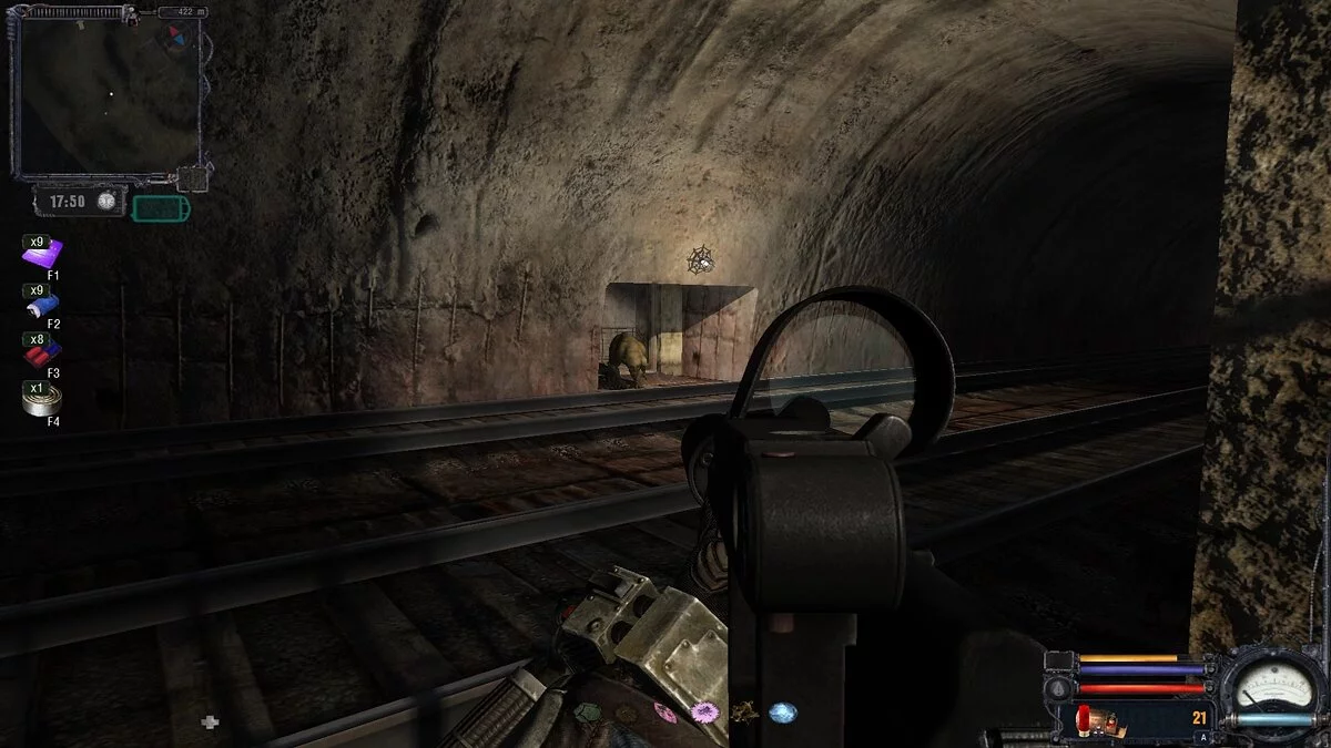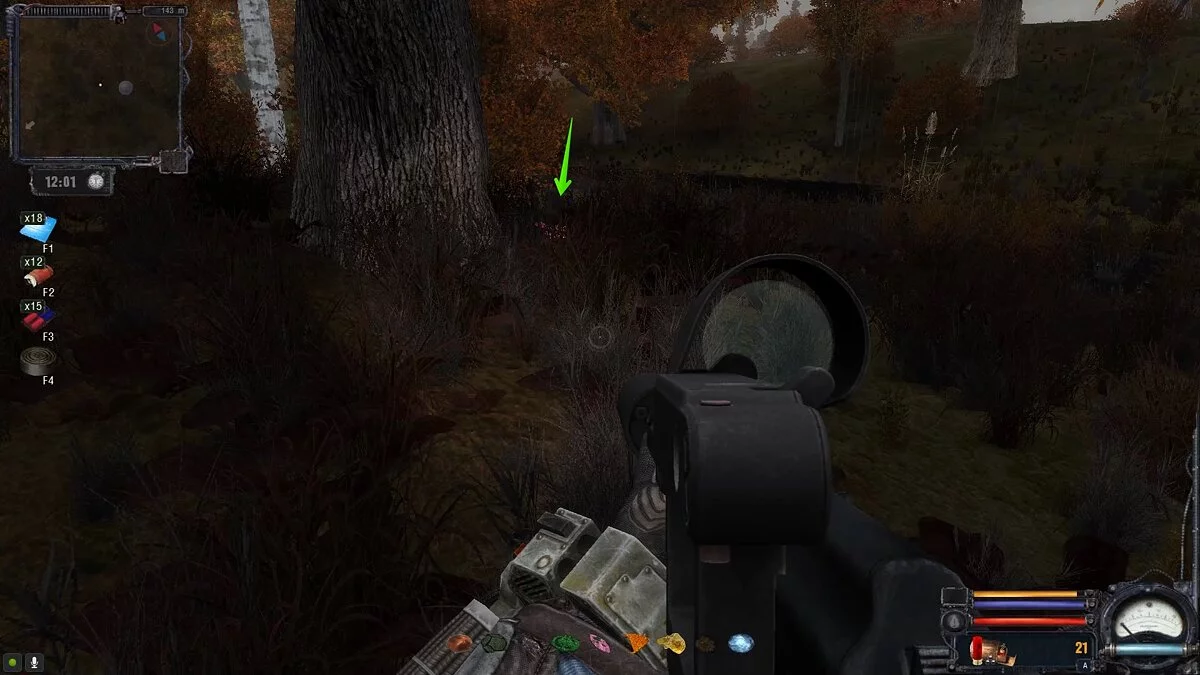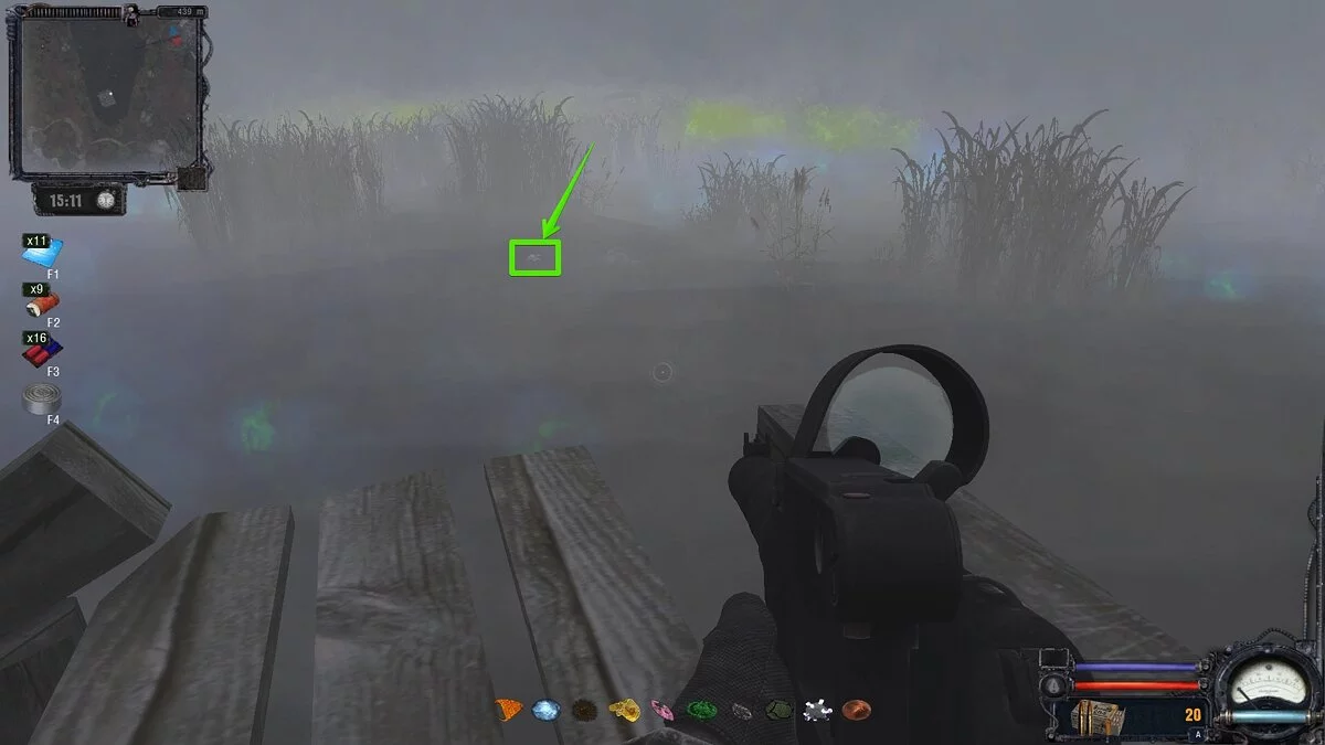 На третий раз к герою телепортируется псевдособака, а затем снорк. Устраните угрозу, после чего аномалия исчезнет. Как только вы подберёте артефакт, появятся враждебные наёмники. Предварительно сохранитесь, чтобы не перепроходить последний сегмент, ведь после катсцены персонажа ещё некоторое время будет качать из стороны в сторону.