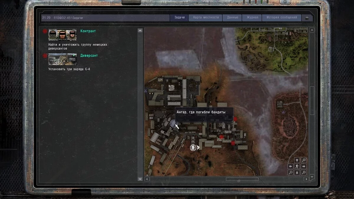 По прибытии вы получите сообщение от Барсука. Он предложит небольшую работу — установить три заряда на территории завода, а затем зачистить оставшихся бандитов и разделить хабар в сейфе главаря. Для этого нужно отыскать одежду бандита.