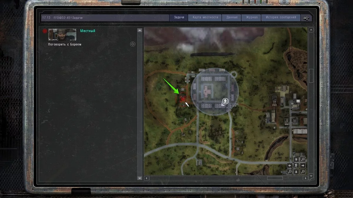 На карте появится отметка, где может находиться сталкер по кличке Барсук. Побеседуйте с Зевсом и узнайте, куда отправился одиночка.