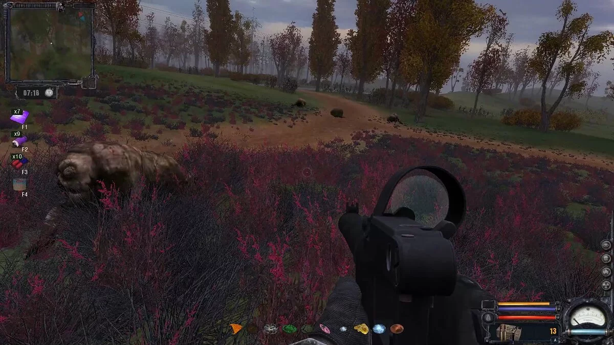 Если решите следовать к бункеру не по дороге, а срезать, то повстречаетесь с изломами и кабанами. Можете убить их, чтобы продать ресурсы учёным.