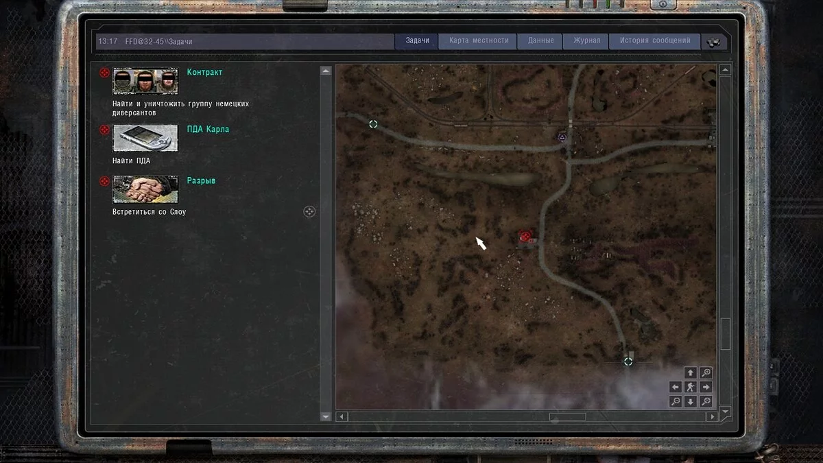 Вставьте его в один из слотов, чтобы получить информацию о переходе на территорию Каньона. Оказавшись на новой локации, приготовьтесь встретиться с несколькими типами мутантов. Продвигайтесь до водоёма, а по пути можете использовать детектор для сбора артефактов. В конце концов вы увидите одноэтажное строение с лестницей — поднимитесь и осмотрите труп, чтобы получить КПК. Предварительно нужно будет расправиться с псевдоконтролёром.