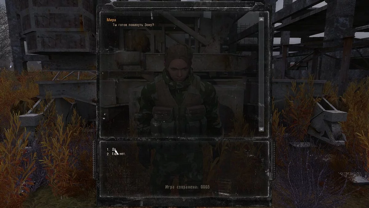 Когда противников не останется, побеседуйте с Мирой и отправляйтесь на место сделки Слоу и заказчика. Убейте шесть наёмников, возьмите кейс и бросайте его в ближайшую аномалию. Чтобы закончить игру, снова обратитесь к Мире и скажите, что готовы покинуть Зону.