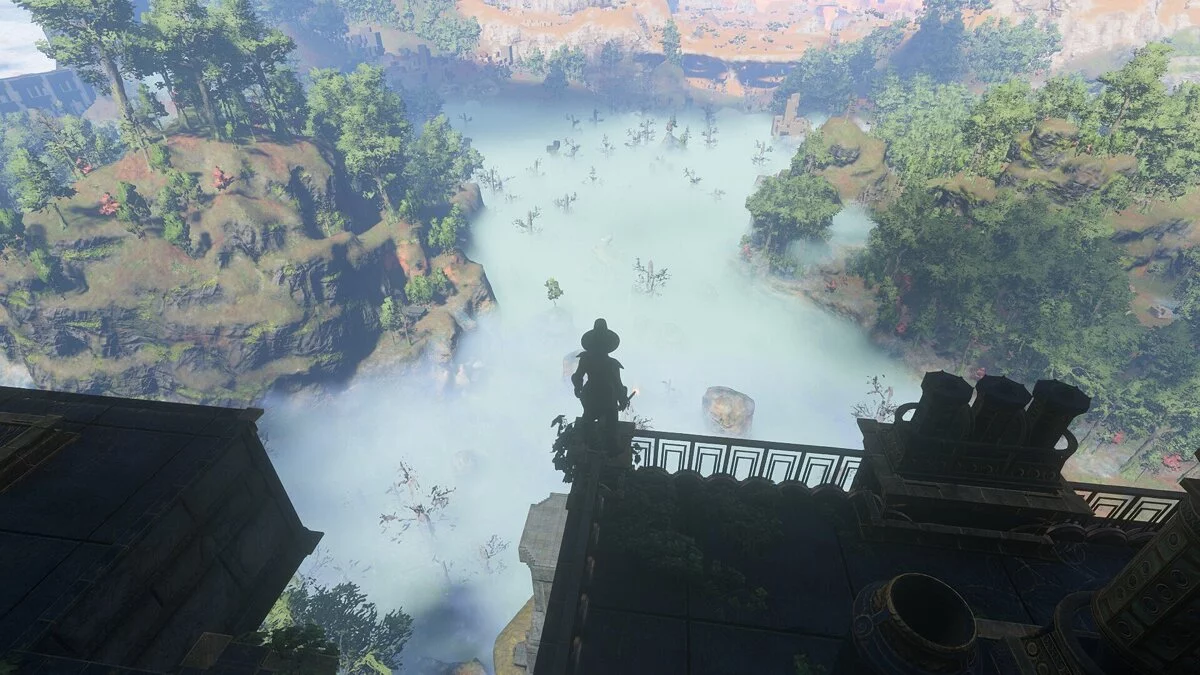 Активируйте на его вершине точку быстрого перемещения, чтобы добраться до местности быстрее в будущем. На востоке от шпиля есть долина в Пелене со множеством янтарных жил. Их трудно разглядеть в тумане, но жилы напоминают глину желтоватого цвета.
