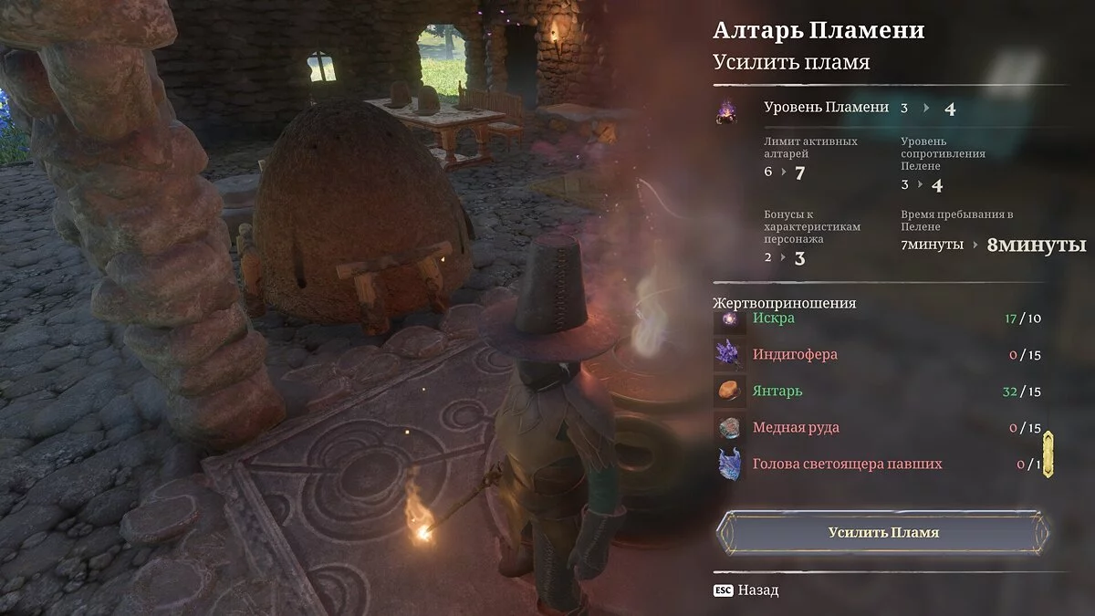Когда янтаря будет достаточно, пришло время его использовать. Во-первых, ресурс нужен для усиления Алтаря Пламени. Это уничтожает Пелену и расширяет доступную территорию. Для улучшения Алтаря до четвёртого уровня потребует 15 единиц янтаря.