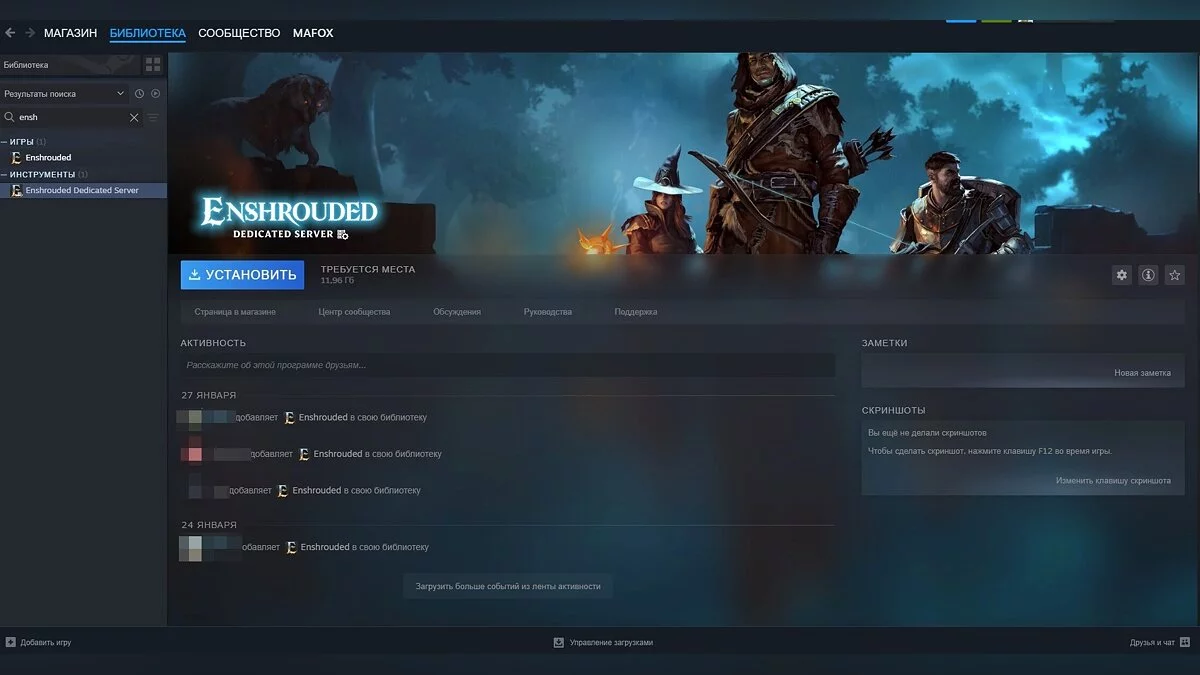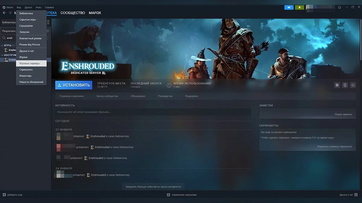 - Щелкните ПКМ на «Enshrouded Dedicated Server» в своей библиотеке, выберите пункт «Управление» и кликните на «Просмотреть локальные файлы»;