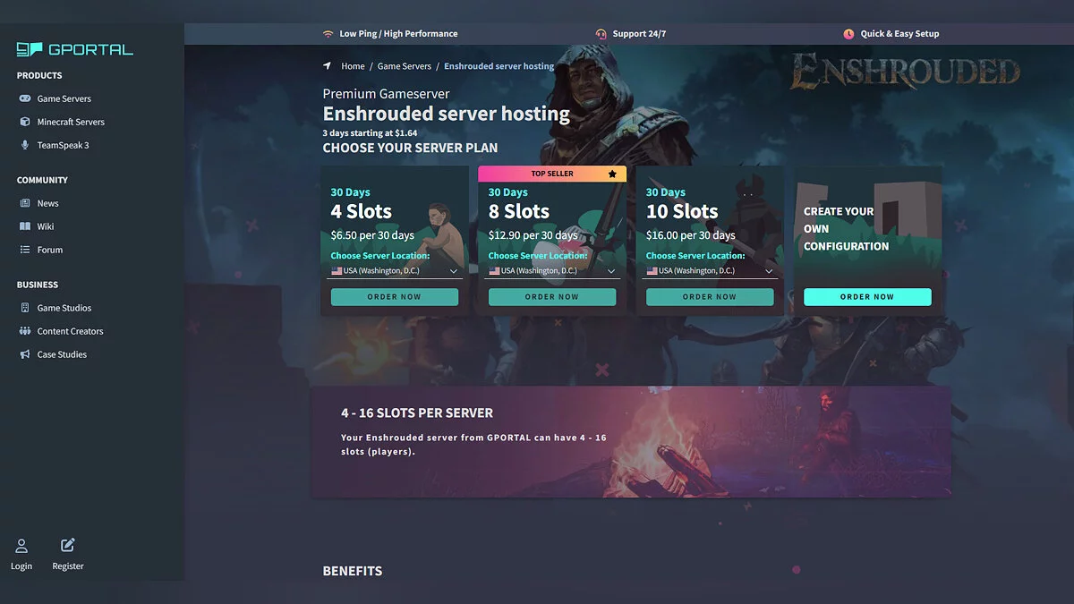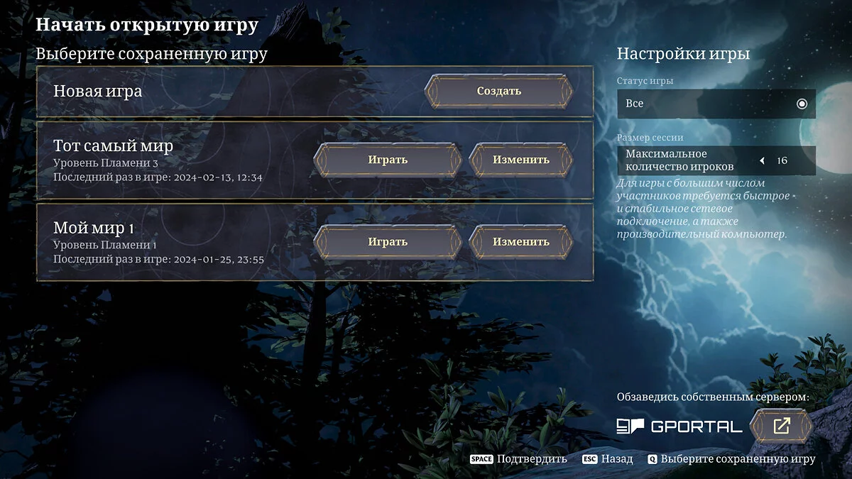 Если у вас не получается описанный выше способ, или вы хотите создать работающий 24/7 сервер, не нагружая свой компьютер, то можете купить выделенный сервер, используя официальных поставщиков, через меню игры. В этом есть несколько преимуществ, такие как уменьшенный пинг, а также дополнительная защита от DDOS-атак. GPortal является основным поставщиком услуг для игры Enshrouded, и вы можете получить доступ к их сайту через внутриигровое меню. Цена за сервер зависит от количества игроков.