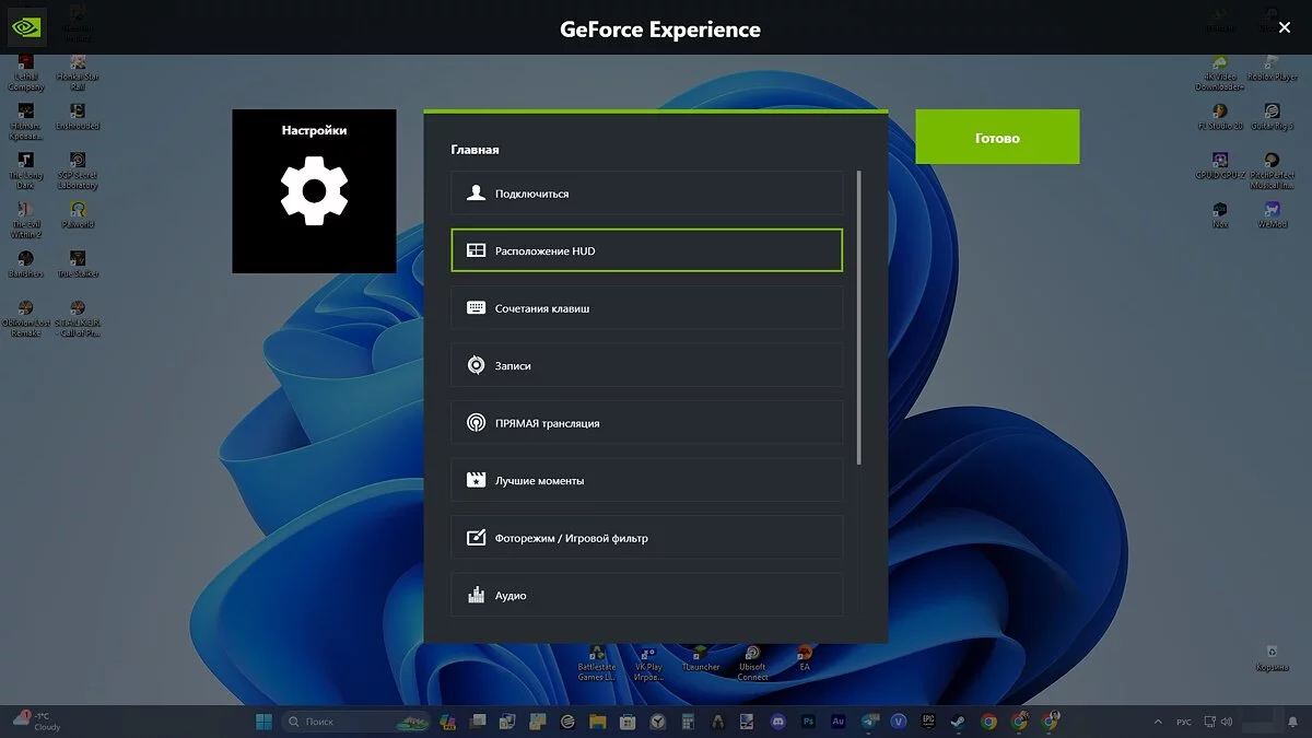 - Используйте сочетание клавиш «Alt+Z», чтобы открыть интерфейс GeForce Experience.