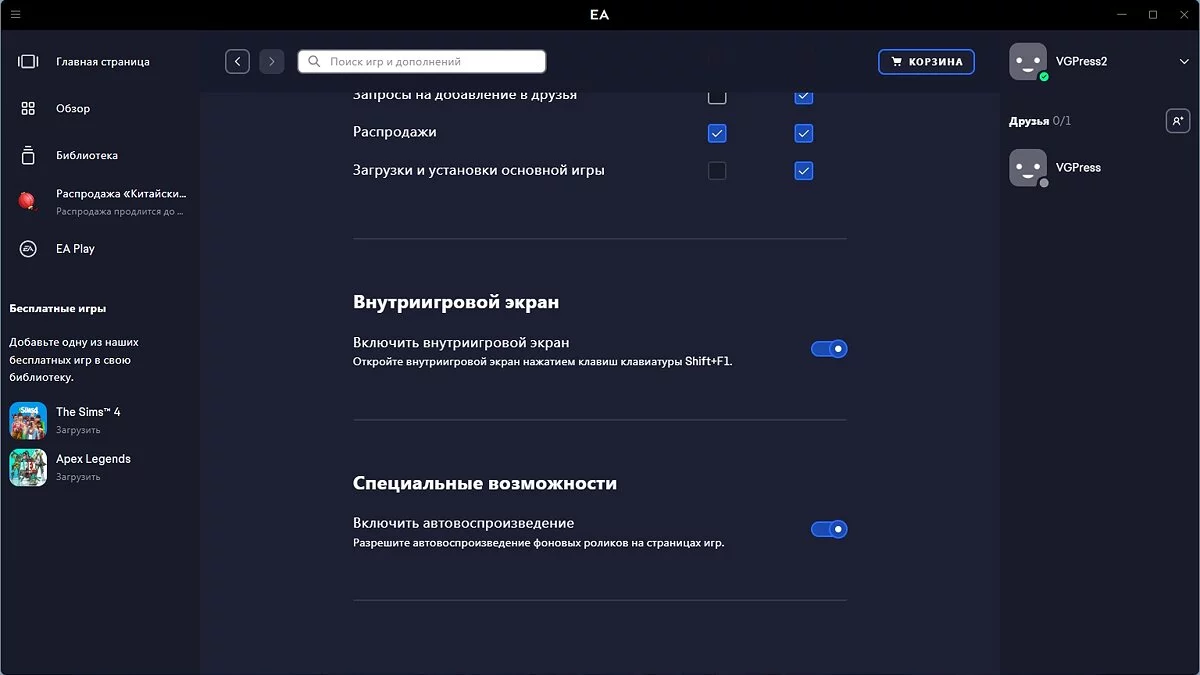 В игровом клиенте EA Origin также доступен встроенный счетчик FPS, который позволяет легко отслеживать производительность, подобно Steam и Ubisoft Connect. Включить его можно следующим образом: