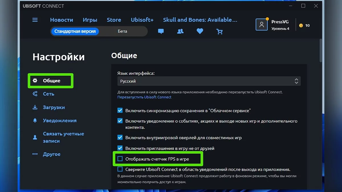В Ubisoft Connect, так же как и в Steam, доступен встроенный счетчик кадров в секунду для проектов от Ubisoft, позволяющий легко отслеживать их производительность. Включить его можно всего в несколько шагов: