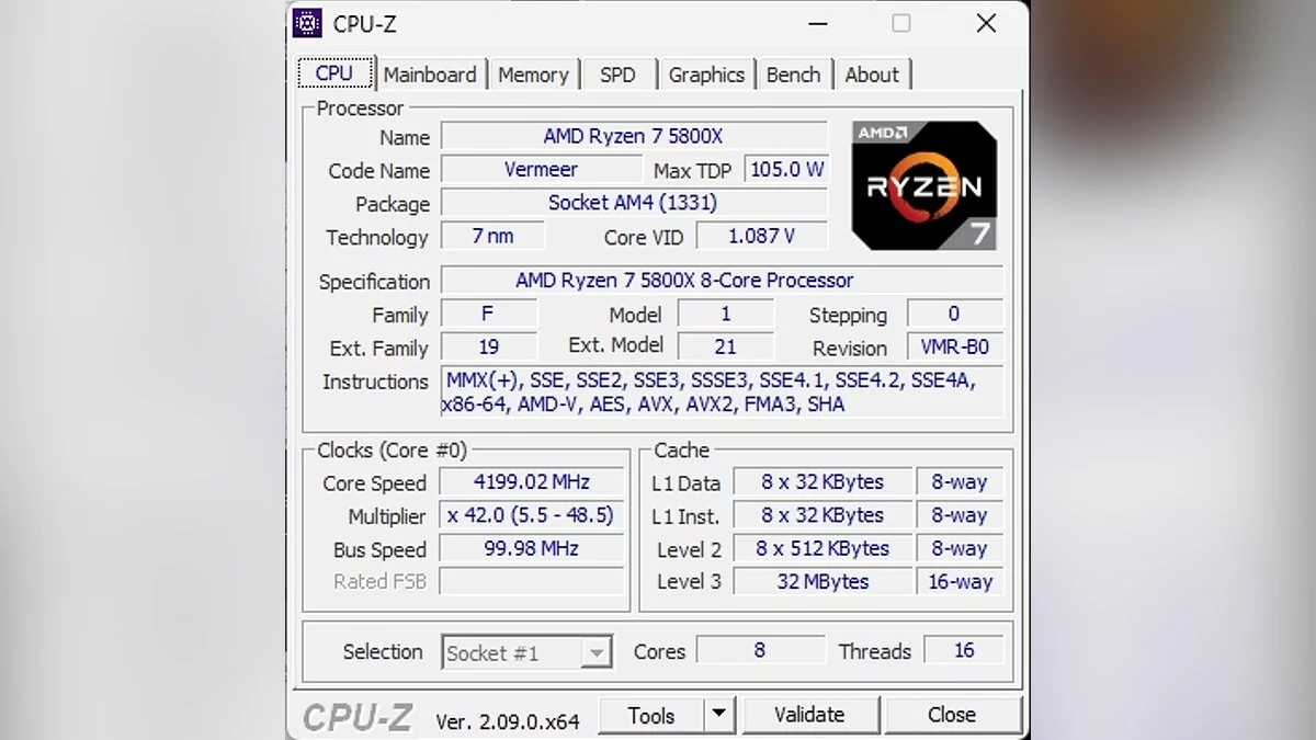 CPU-Z предоставляет подробную информацию о процессоре, включая его название, архитектуру, одноядерную и многоядерную производительности. Также показывает данные о материнской плате, памяти и ОС в целом.