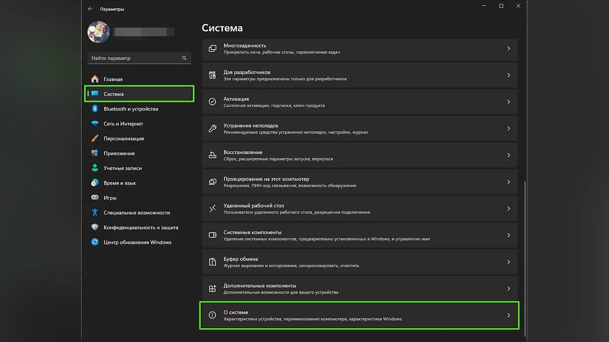 - Прокрутите страницу вниз и отыщите вкладку «О системе».