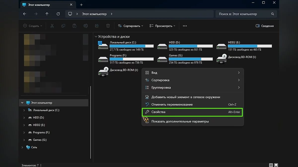 Самый простой и базовый способ отследить конфигурацию устройства на Windows 11 — открыть «Свойства системы». Это можно сделать несколькими способами.