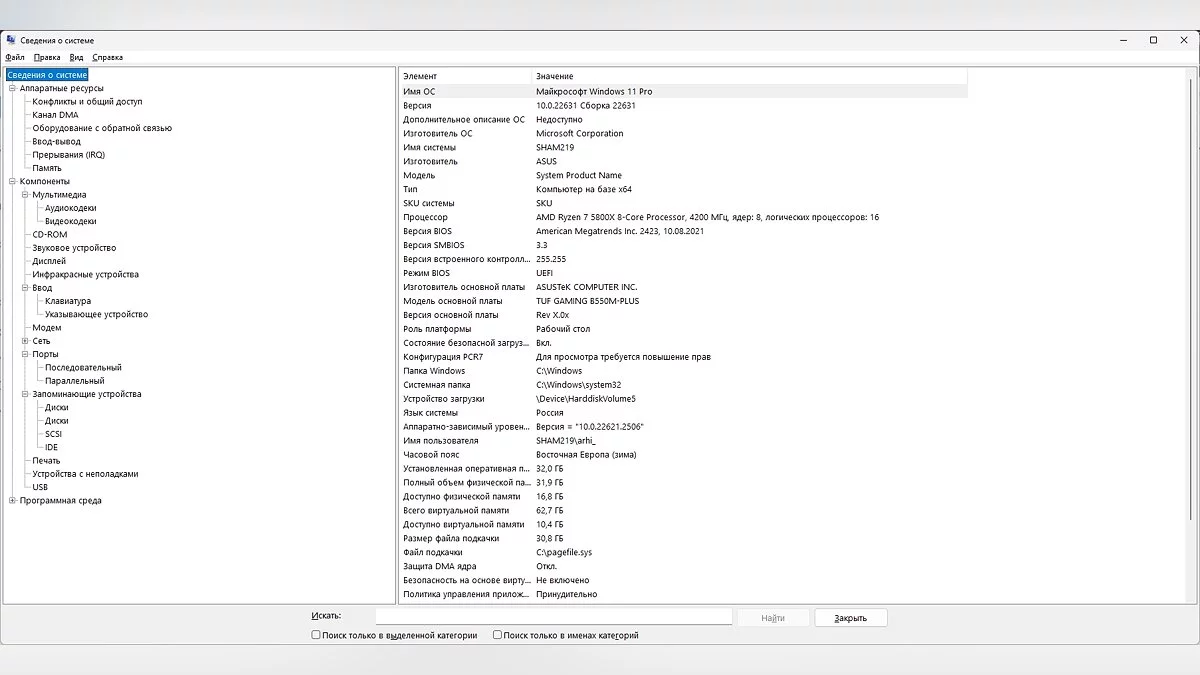 Здесь вы найдете подробную информацию о вашей операционной системе Windows 11, включая модель ОС, тип процессора, версию BIOS, объем оперативной и виртуальной памяти, и многое другое.