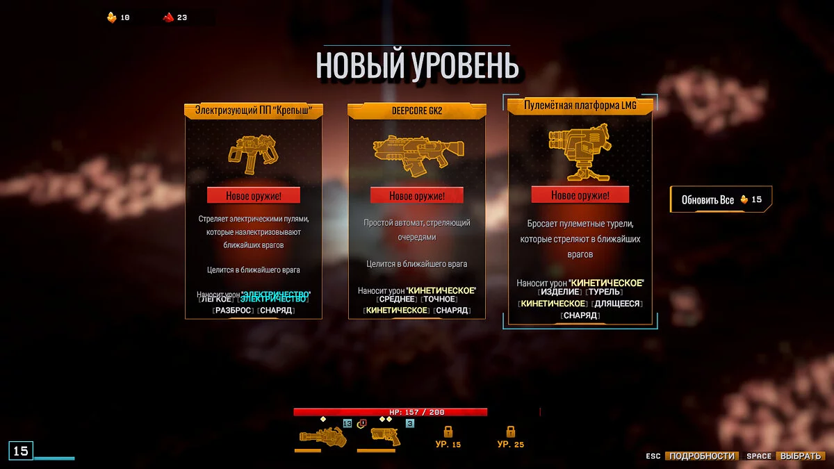Чтобы открыть особые навыки каждого оружия, нужно поднять его уровень до 12 за один забег. В среднем вы будете получать 40 уровень, поэтому успеете улучшить не более двух типов снаряжения. Для усиления всего оружия придётся много гриндить, но это важная часть игры и возможность изучить различные комбинации.