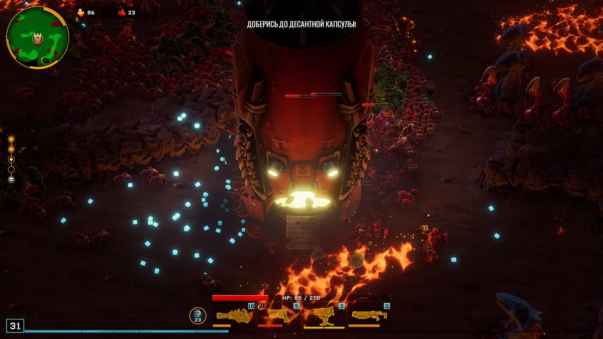 - Криопушка — урона недостаточно, чтобы одним этим оружием уничтожать жуков, поэтому на высоких уровнях есть шанс умереть, когда будете перезаряжаться;