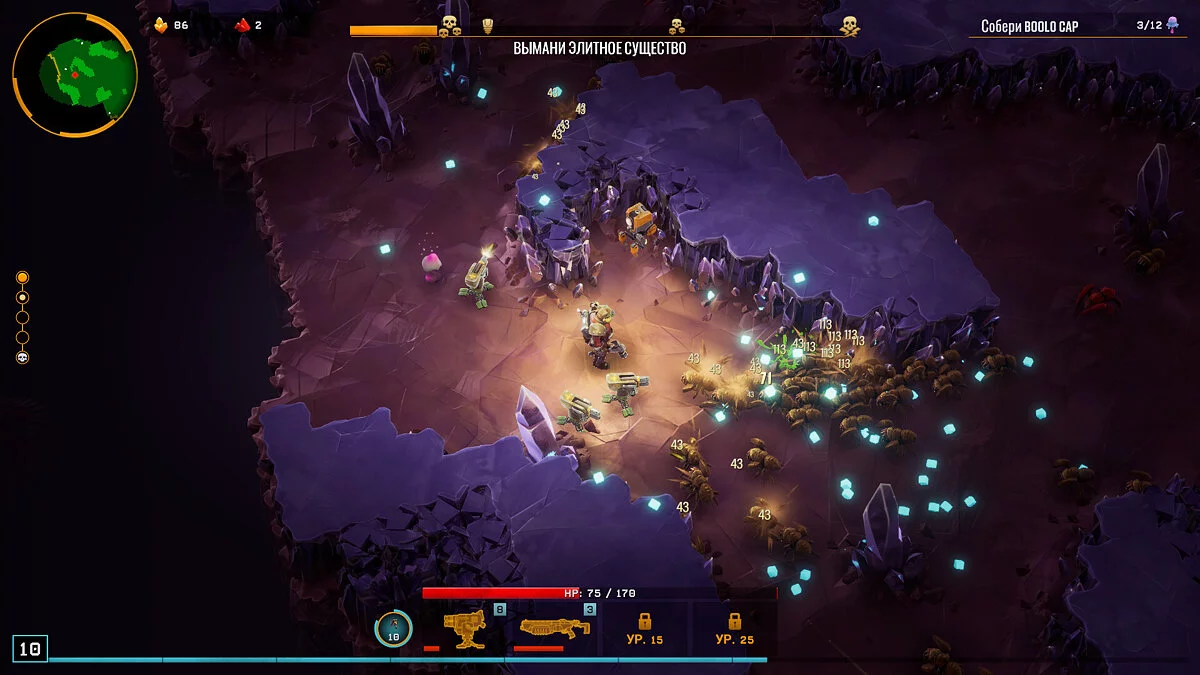 - Умная винтовка LOK-1 — слабая, медленная и малоэффективная пушка, мешающая в игре. Автонаведение работает криво, поэтому на боссов уровня уходит в разы больше времени;