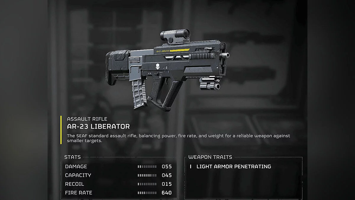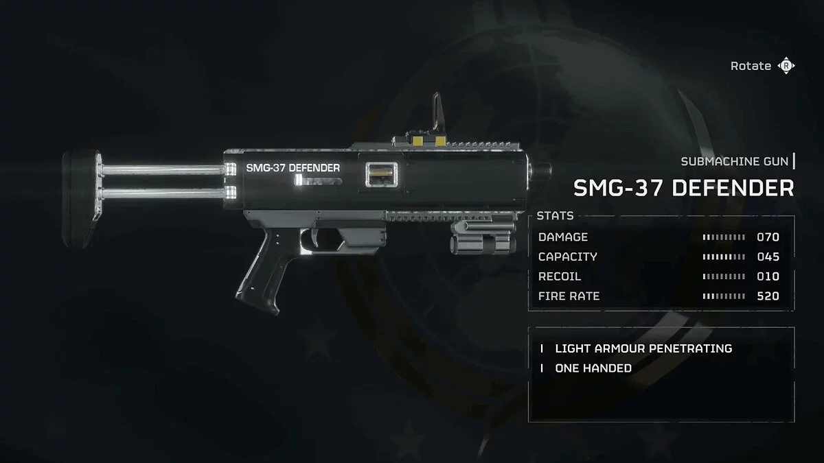 Этот вариант больше подходит для локаций Терминидов, где сражения проходят на ближней и средней дистанциях. Для таких миссий прицел не так важен, а Defender удобен тем, что его можно использовать одной рукой. Это отличный выбор для миссий с поиском данных.