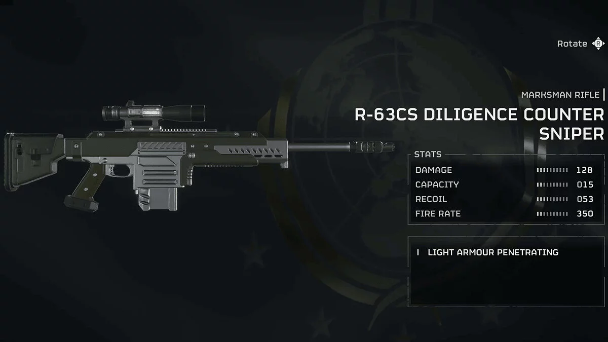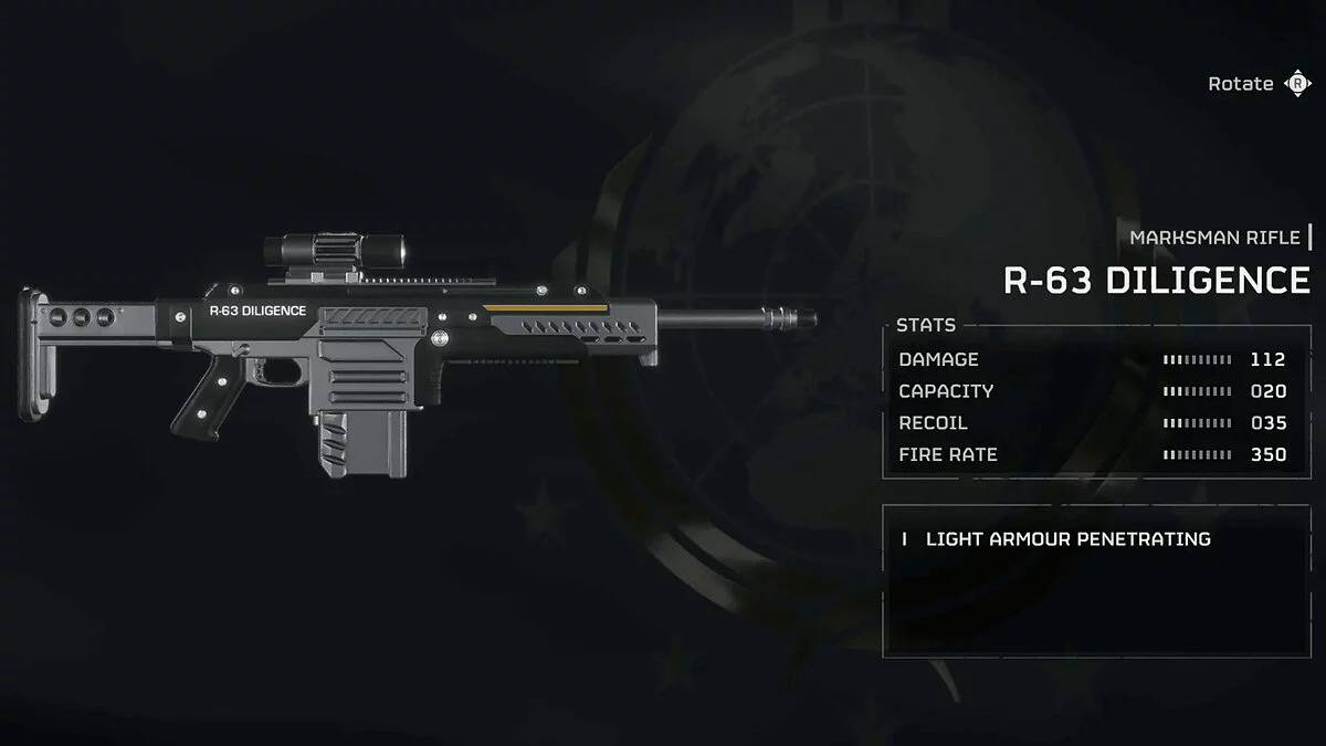 Можно купить за 5000 кредитов на 2 уровне персонажа. Отлично подходит для уничтожения врагов с легкой броней, а его высокая мощность позволяет успешно вести прицельный огонь по наиболее важным целям с безопасного расстояния. Однако у него есть один существенный недостаток — его эффективность на близких дистанциях крайне мала, и его можно использовать только с прицелом.
