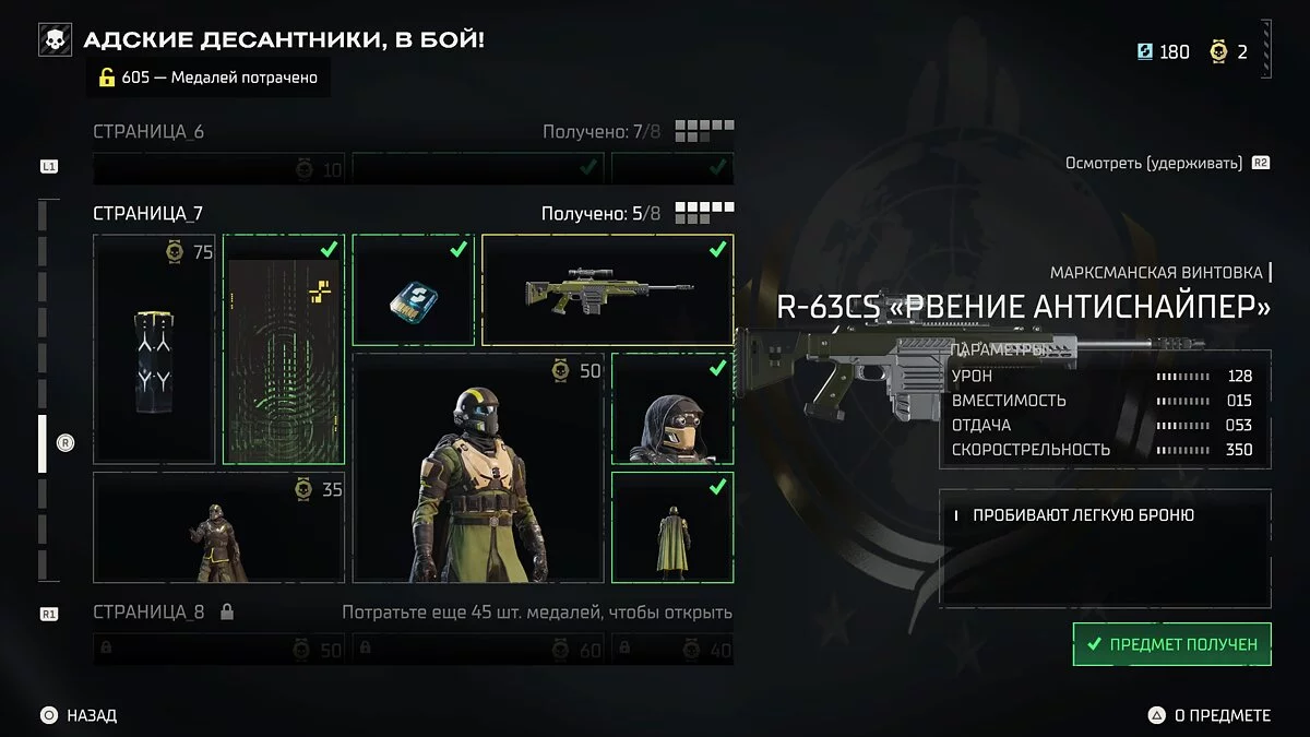- Покупка за валюту: можно приобретать снаряжение за кредиты, получаемые за любую активность в игре, или за супер-кредиты в премиальной системе заслуг, которые можно приобрести за реальные деньги.