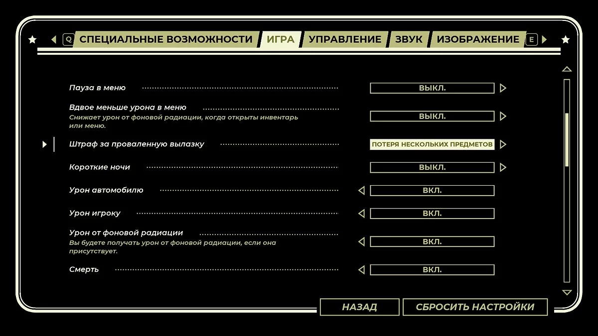 Примечание: Отключение некоторых функций повлияет на возможность получения игровых достижений. Если вы хотите открывать ачивки, придётся воздержаться от использования некоторых настроек.