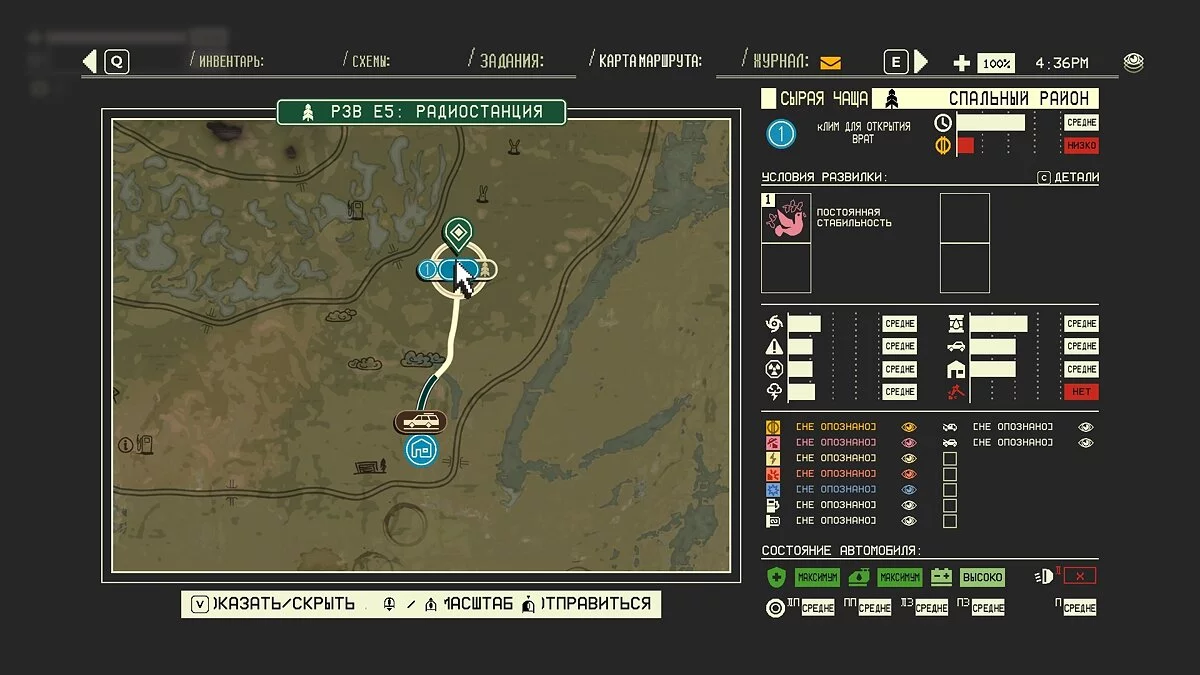 Зарядите аккумулятор и воспользуйтесь картой, чтобы составить маршрут. Задняя дверь гаража откроется и вы сможете отправиться на первую вылазку.