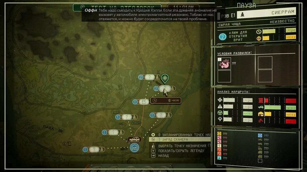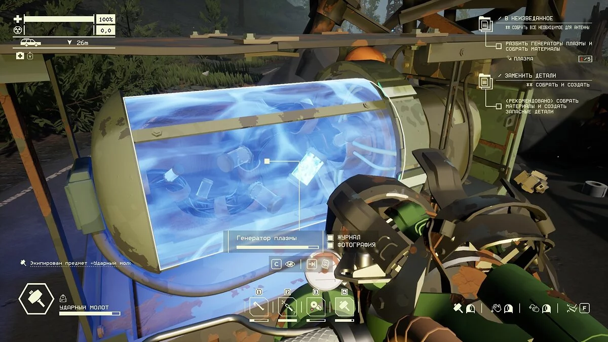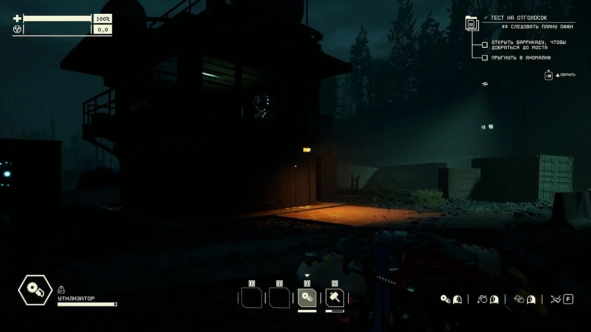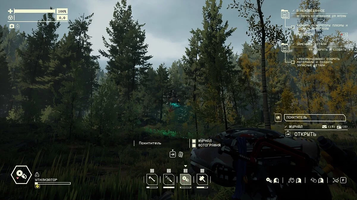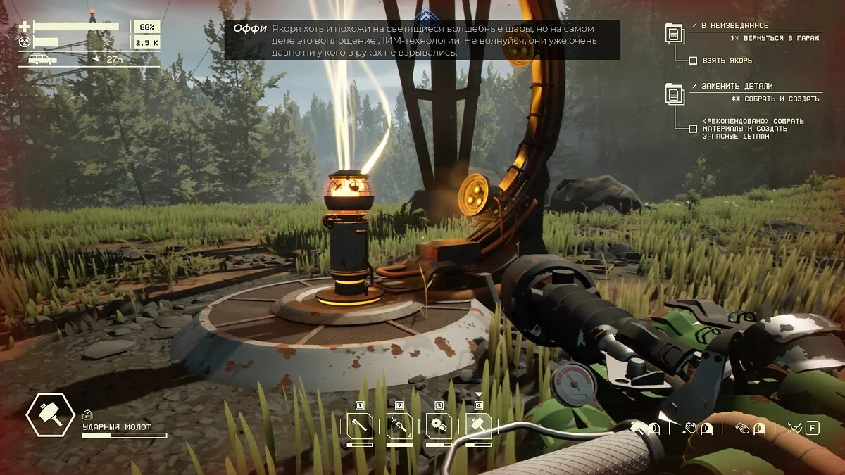 По пути можете собирать ресурсы для крафта и сканировать новые аномалии, но старайтесь не подходить близко и не взаимодействовать с ними. С большой вероятностью неподалёку перед выездом из локации начнётся буря.
