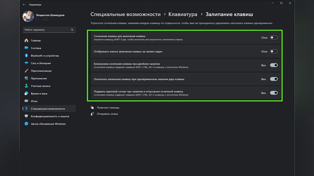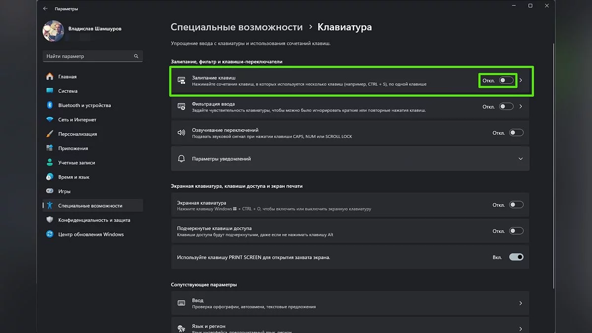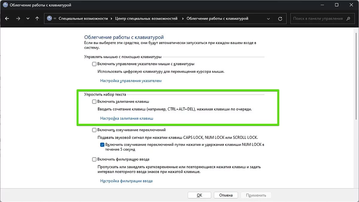 Как отключить залипание клавиш в Windows 10 и Windows 11