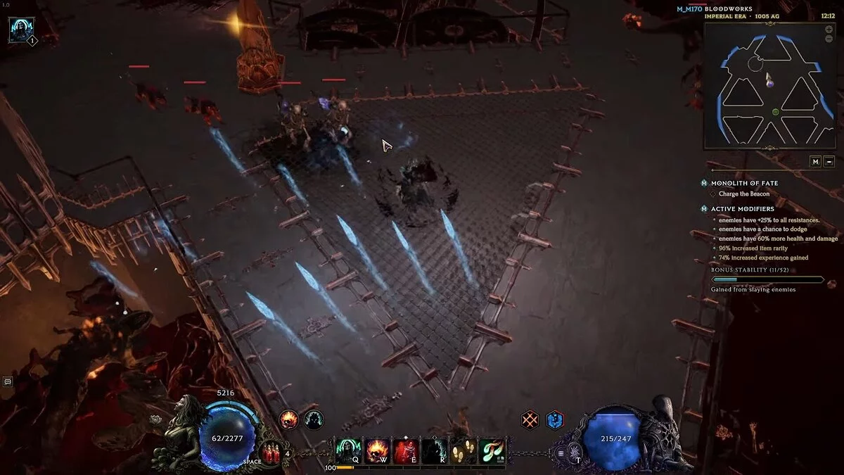 «Всплеск крови» — ваша главная способность, которую необходимо постоянно прожимать. Используйте модификаторы «Брызги», «Потрошение» и «Настой крови», чтобы усилить голема и наложить дебаффы на врагов, пораженных «Брызгами крови».