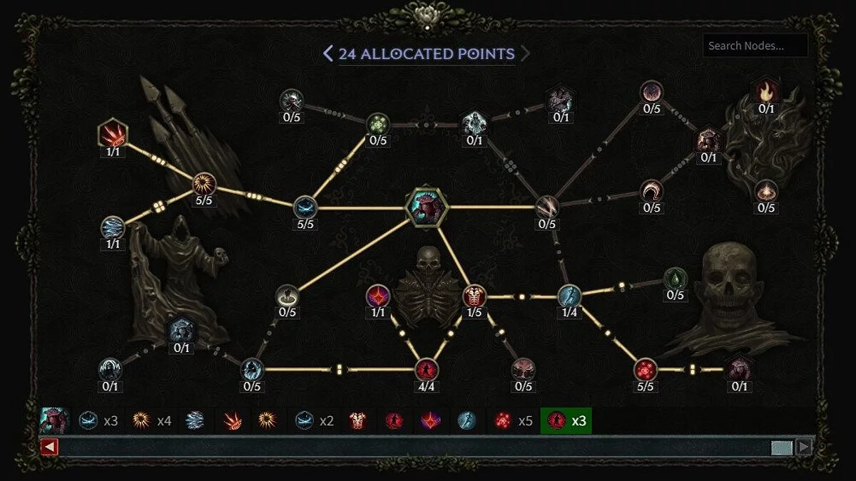 «Призыв скелета-мага» — основа этой сборки. Все остальные навыки вращаются вокруг увеличения урона вашего архимага. Выбирайте «Криоманты» и «Морозного лича» как можно раньше, чтобы иметь гарантию на еще одного архимага с суммированными баффами. «Серый Торговец» в сочетании с «Эгоизмом» от «Ужасающей тени» поддерживает здоровье вашего мага. Увеличьте свой AoE с помощью «Расколотого доминиона». В дальнейшем увеличивайте DPS с помощью «Мобильного прилива» и «Запретной тайны», добавляя множитель урона, основанный на количестве доступной маны.