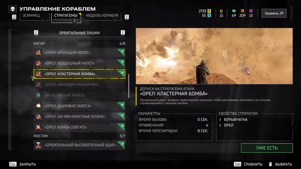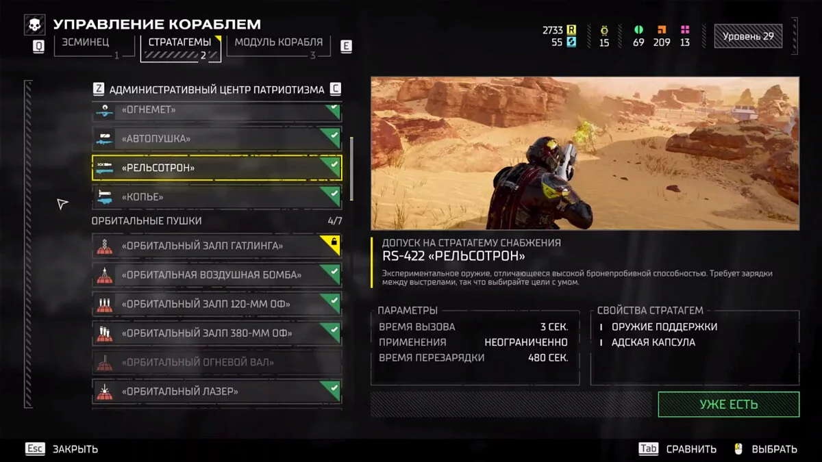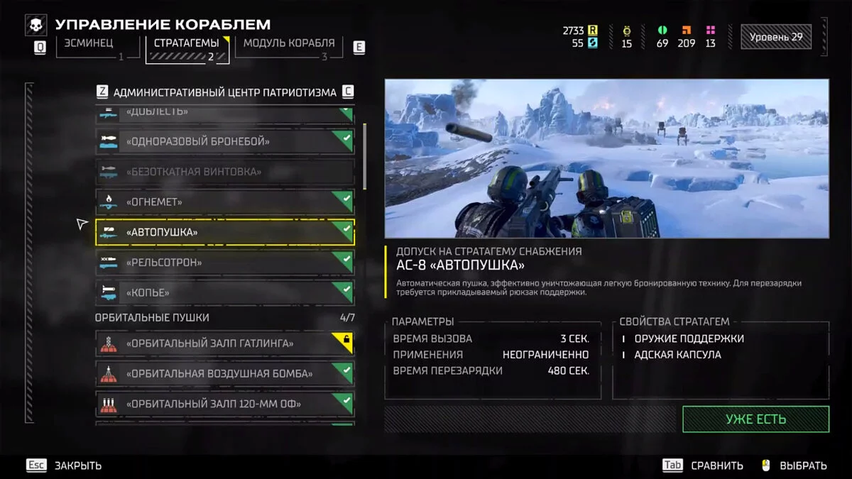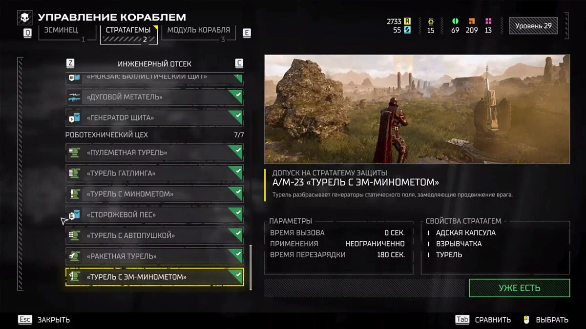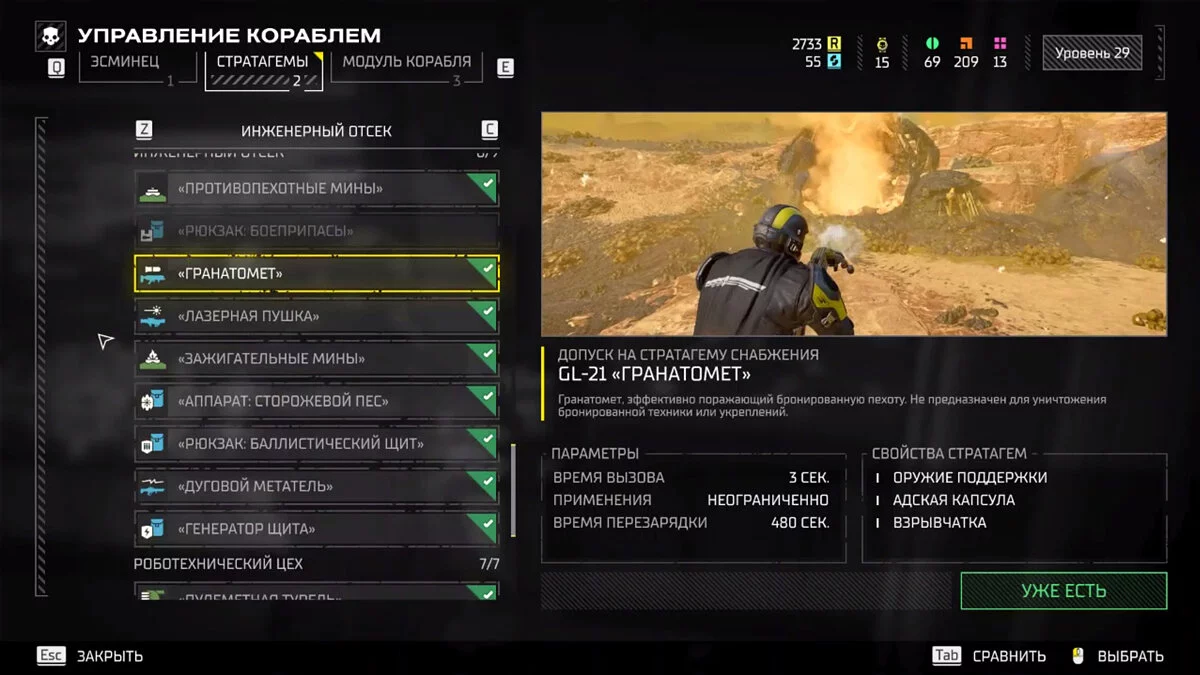 Стратагемы в Helldivers 2 обладают различным назначением и используются в зависимости от определённой цели миссий. Улучшение происходит в соответствии с конкретным элементом главного корабля, который остаётся на орбите планеты во время выполнения заданий. Разберем лучшие стратагемы при улучшении элементов корабля.