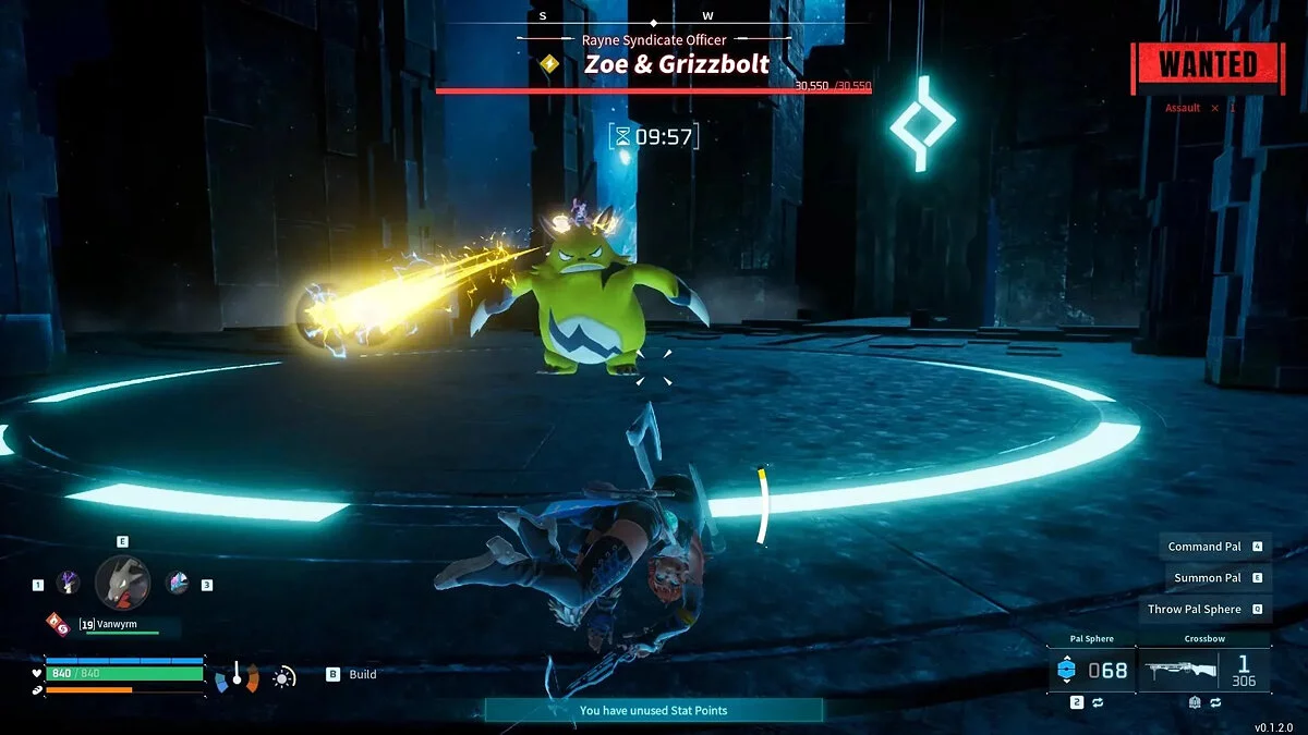 Войдите в Башню Синдиката Рейна, чтобы сразиться с боссом. Вы увидите квадратную арену с несколькими колоннами по обеим сторонам. Гриззболт и Зои — это самый простой босс в Palworld, но эта парочка может доставить немало хлопот неподготовленному пользователю. От них стоит ожидать сочетание атак дальнего и ближнего боя, урона от которых можно избежать лишь за столбами. Старайтесь чаще перебегать с места на место и циклически использовать способности Фаддлера и Гумосса, чтобы ослабить электрического Гриззболта.