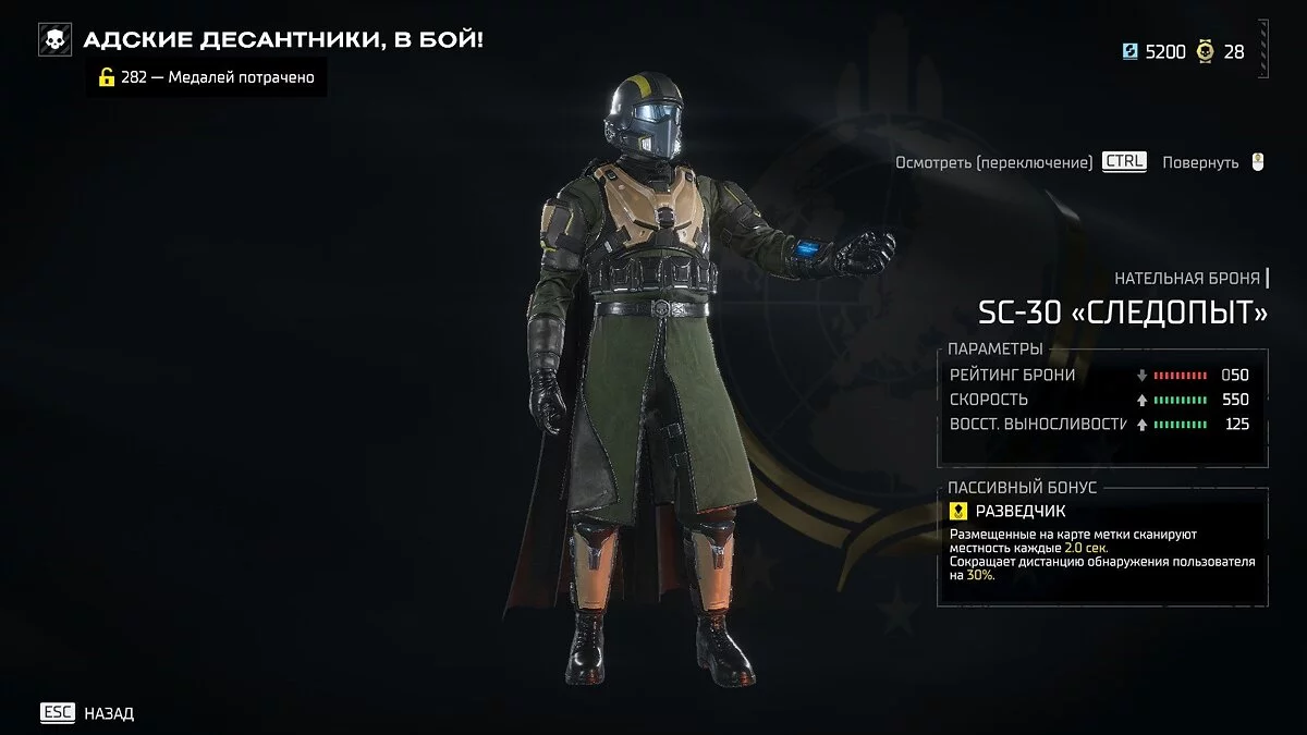 Первым делом вам необходимо получить легкую броню из обычного баттл-пасса. Она поможет нам быстро перемещаться по карте и значительно экономить время на фарме. На первой странице можно открыть SC-34 «Лазутчик» с 530 очками скорости и 115 восстановления выносливости. Этого вполне хватит для быстрого фарма. Если вы уже провели в Helldivers 2 какое-то время, то советуем открыть броню SC-30 «Следопыт» с ее 550 очками скорости и 125 выносливости.