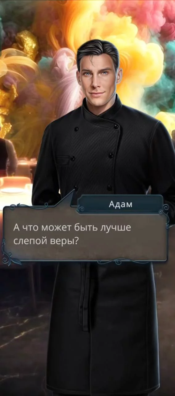 Снова сменились декорации заведения, а официанты вынесли второе блюдо. В этот раз Адам говорил не только о риске в общем деле, но и о доверии. Он спросил у девушек, верят ли они друг другу.