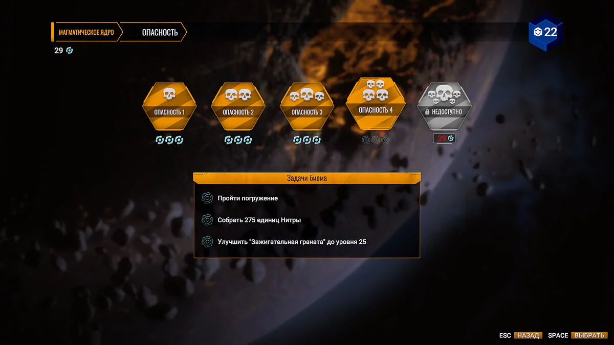 - Hoxxes Manual — Умереть 3 раза. После получения откроется универсальное «Руководство по погружениям» с параметрами: +10% урона, +10% скорости перезарядки, +5% шанса крита, +20% критического урона;