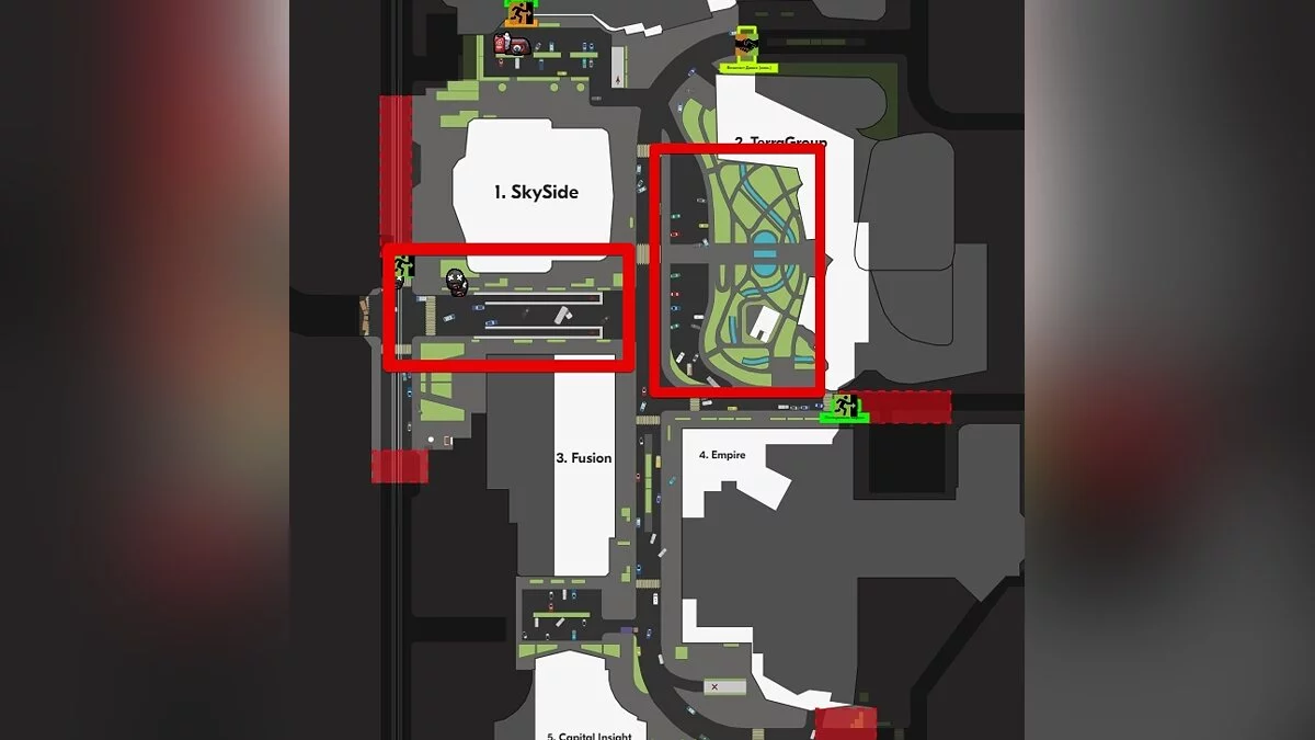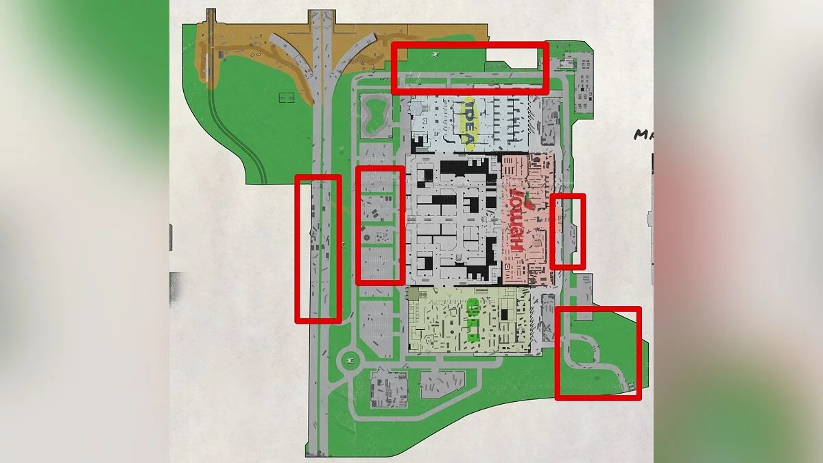 Так как большую часть карты занимает огромный торговый центр, встретить здесь приспешников можно на улице в нескольких местах: